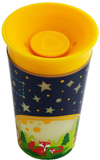 Munchkin Miracle 360 Glow in the Dark — барвиста чашка-непроливайка з фантастичним малюнком, який світиться в темряві.