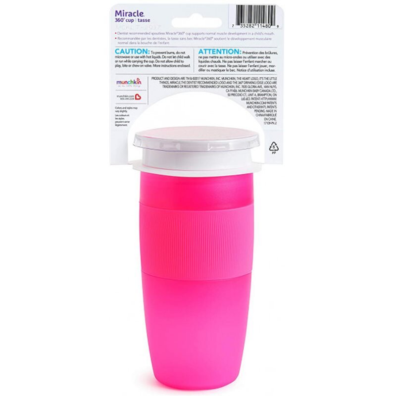 Особливості: Форма чашки без "носика" рекомендована стоматологами, як безпечна для зубів і сприяє розвитку м'язів рота. Конструкція Miracle 360 ° дозволяє пити по всьому колу чашки. Чашка автоматично закривається при припиненні використання і ні краплі рідини не проллється мимо. Силіконова накладка з дизайном у формі серця — зручно пити, зручно тримати. Дозволено мити на верхній полиці посудомийної машини. Не містить Бісфенол-А (BPA).