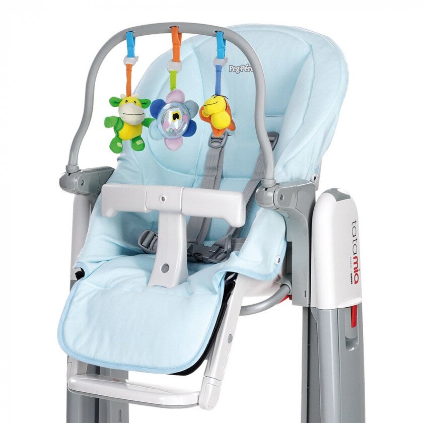 Ігрова панель і чохол Peg - Perego для дитячого стільчика Tatamia порадує кожну маму і малюка. Яскраві, цікаві і забавні іграшки розважатимуть і відволікатимуть малюка. М'яка оббивка чохла, рассчитанна на прямий контакт з шкірою дитини, зроблена з тканини Soft - touch. Оббивку можна стирати вручну або в пральній машині при 30 градусах.