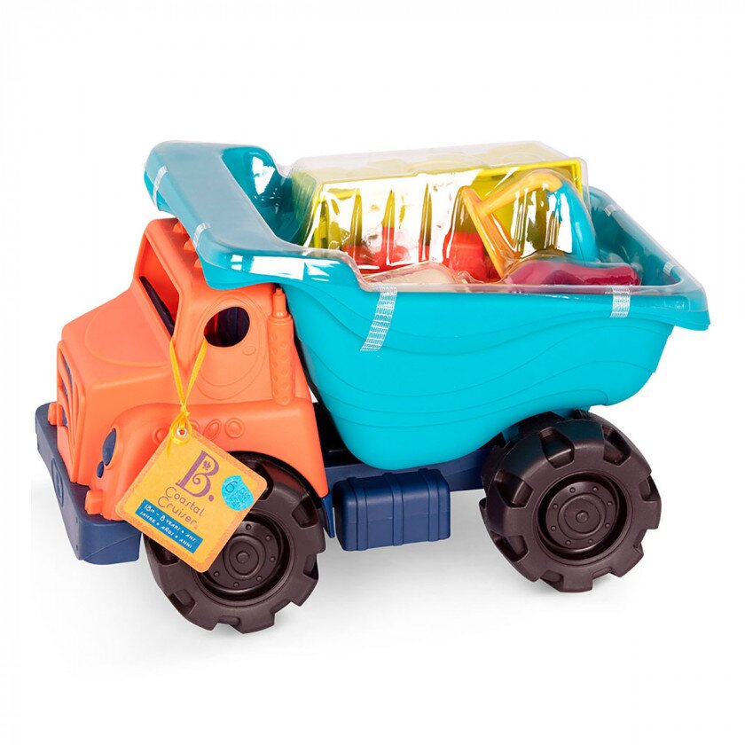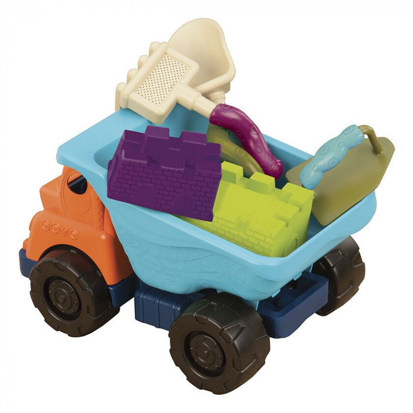 Барвистий великий самоскид з аксесуарами для гри в пісочниці від торгової марки Battat. У всі часи гра в пісочниці була і буде популярною серед малюків. Яка дитина не любить будувати свій пісочний замок? Вашій дитині обов'язково припаде до смаку набір для гри з піском «Чудо-Самоскид». Цей ігровий комплект внесе різноманітність в ігри малюка як в пісочниці, так і на пляжі. Іграшка буде розвивати координацію рухів малюка, уяву і дрібну моторику рук і пальців.