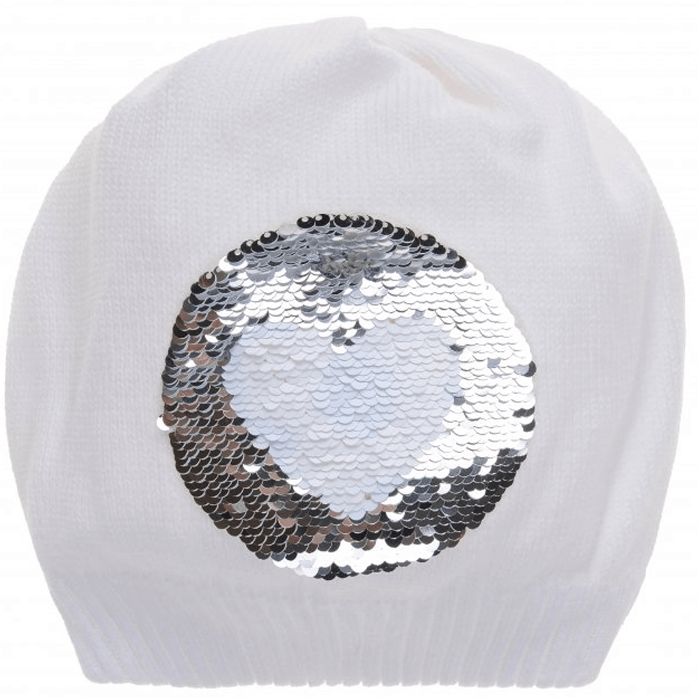 Трикотажна шапка для дівчинки 3-4 років. Виробництво Естонія. Склад - 100% бавовна. Щільне прилягання шапки до голови забезпечує в'язана гумка. Головний убір прикрашає вишивка з блискіток.