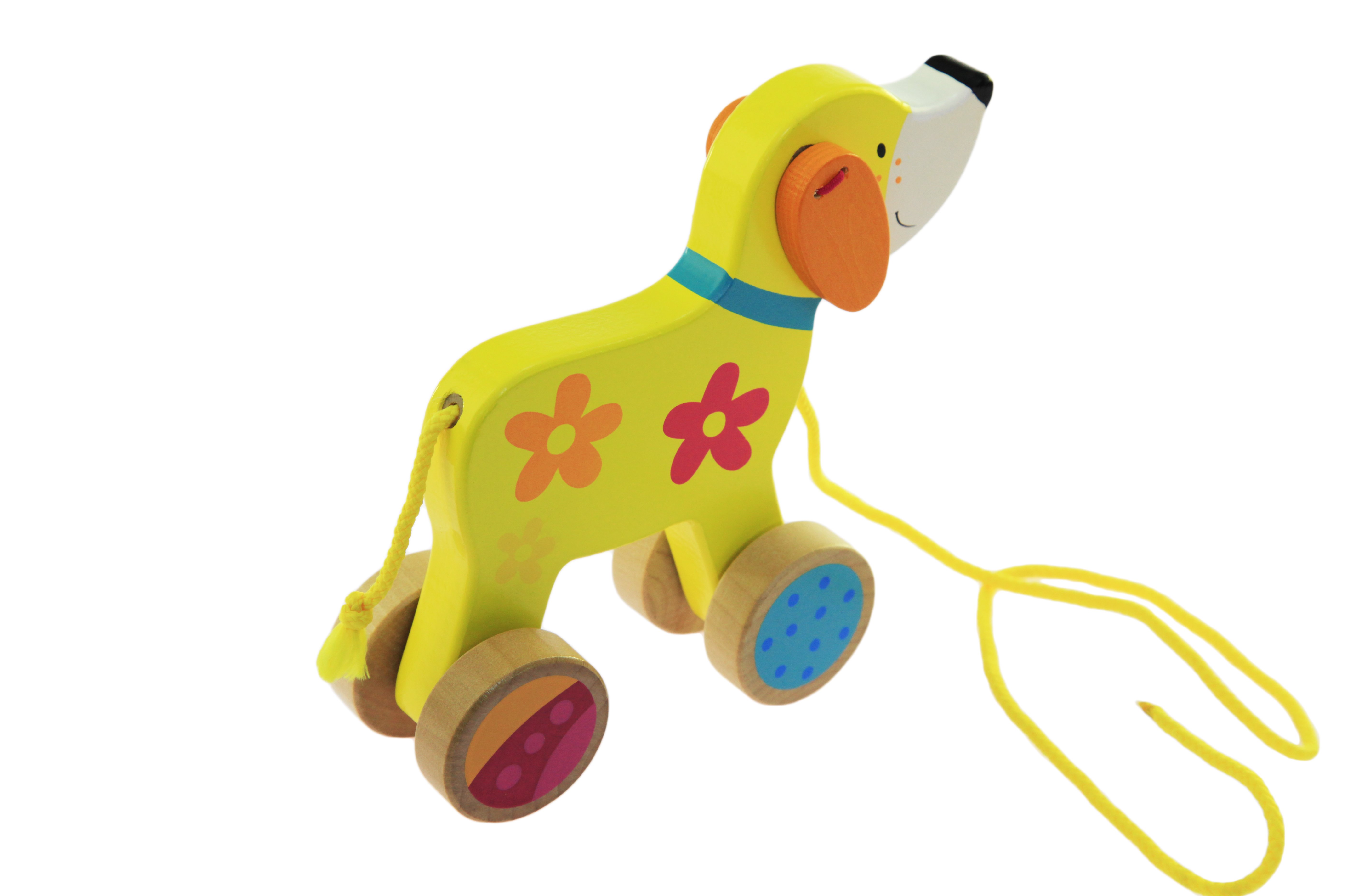Для маленьких дітей від одного року найкраще підходять найпростіші іграшки. Ця каталка німецького виробника іграшок goki виконана в формі собачки з екологічно чистого дерева і прикрашена красивими різнокольоровими візерунками.