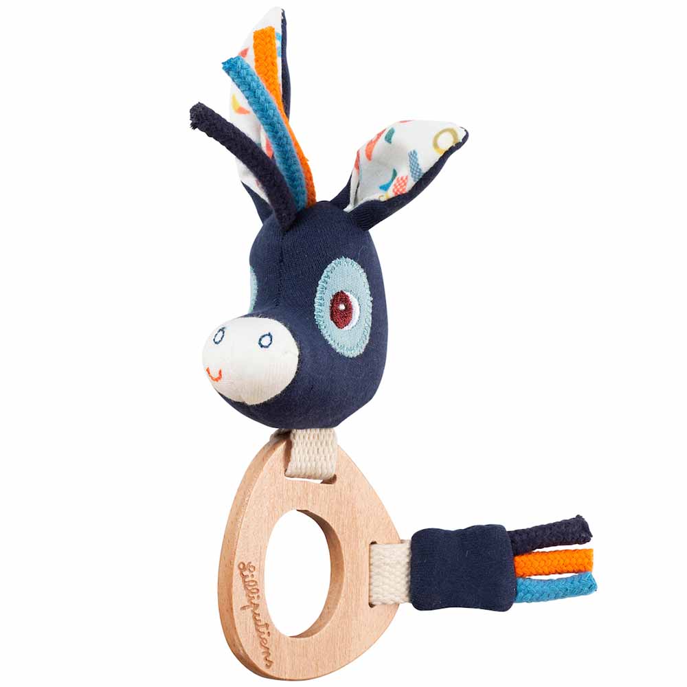 Дерев'яне брязкальце Lilliputiens Віслюк Ігнасій (83331) - оригінальне, м'яке та багатофункціональне джерело розваги та навчання для допитливих малюків. До зручної дерев'яної ручки прикріплена брязкальце - голова Віслюка та її сенсорно-стимулюючий хвіст з різних тканин (органічна бавовна). Ручка має безпечну овальну форму і з успіхом може використовуватись як прорізувач. При струшуванні видає приємні для слуху звуки.