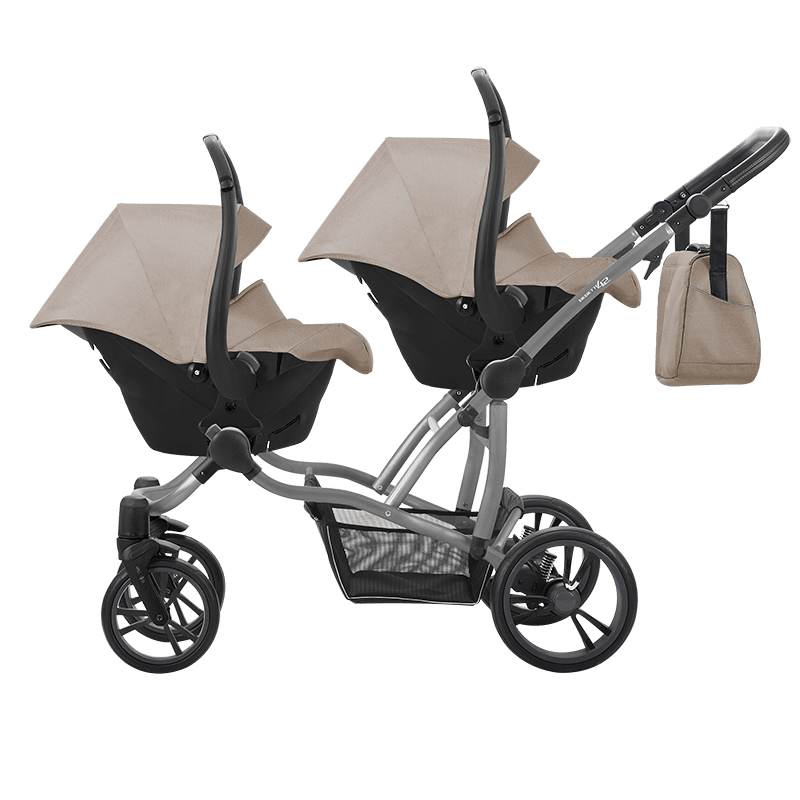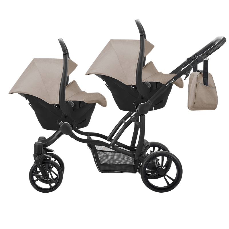 Особливості. Дитяча універсальна коляска 2 в 1 для двійні Bebetto 42 оснащена всім необхідним для сучасної коляски 2 в 1. Високі підкачувані колеса, шасі, оснащене механізмом регулювання жорсткості і системою антишок, дбайливо побереже солодкий сон обох малюків. Для того щоб ніякі дрібні неприємності не порушували міцний сон і гарний настрій діток в комплектацію даної моделі входять дві окремі антимоскітні сітки і два дощовика. Конструкція цієї моделі дозволить Вам проявляти свою виховну креативність, експериментуючи з розміщення колисок і прогулянкових блоків за напрямом і проти руху, а також обличчям один до одного. Надкомпактні розміри і ергономічний механізм складання гарантовано викличуть захват обох батьків.