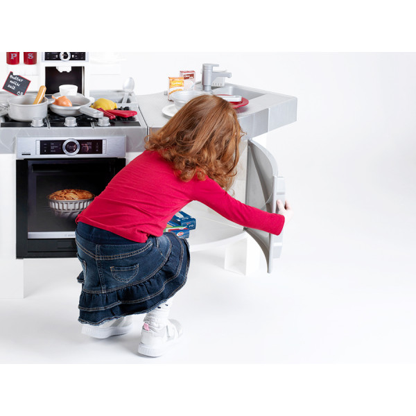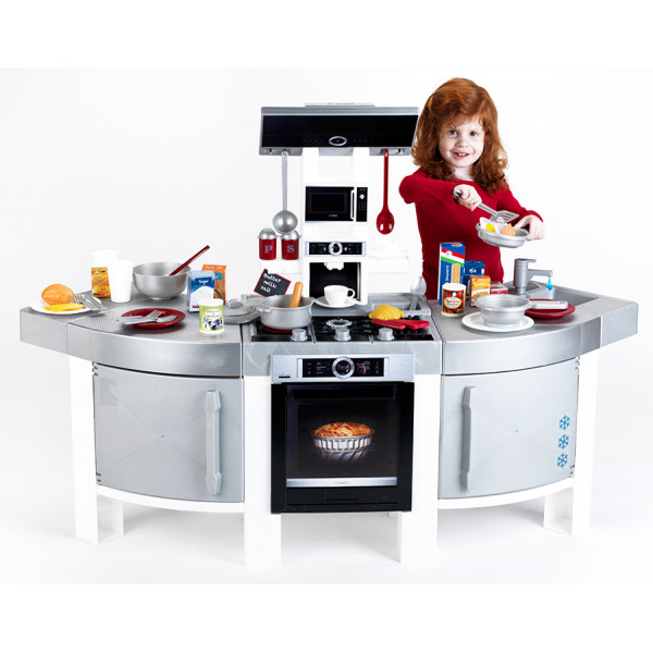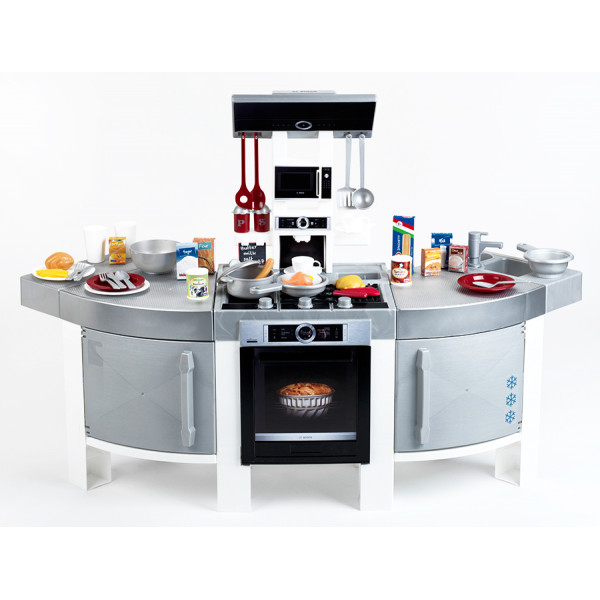 Двосторонній кухонний гарнітур Klein Bosch JUMBO з реалістичними функціями приготування та звуками. Кран з функцією води. Великий набір аксесуарів, столовий сервіз.