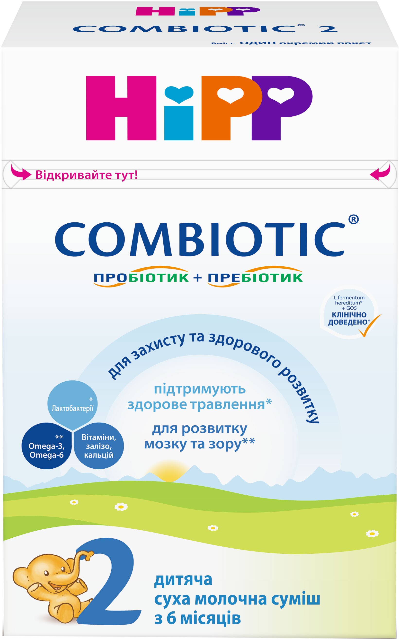 HiPP Combiotic 2 — для здорового росту й розвитку. На основі останніх наукових досліджень грудного молока наукові експерти HiPP з дитячого харчування розробили нове покоління молочних сумішей HiPP Combiotic з пробіотиками та пребіотиками, які найбільше відповідають потребам дитини в повноцінному харчуванні.