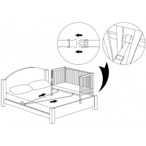 - можливість використовувати ліжечко як приставне або дитячий диванчик (для цього потрібно зняти бокову рухому стінку), для використання ліжечка як приставного рекомендуємо використовувати систему кріплення;