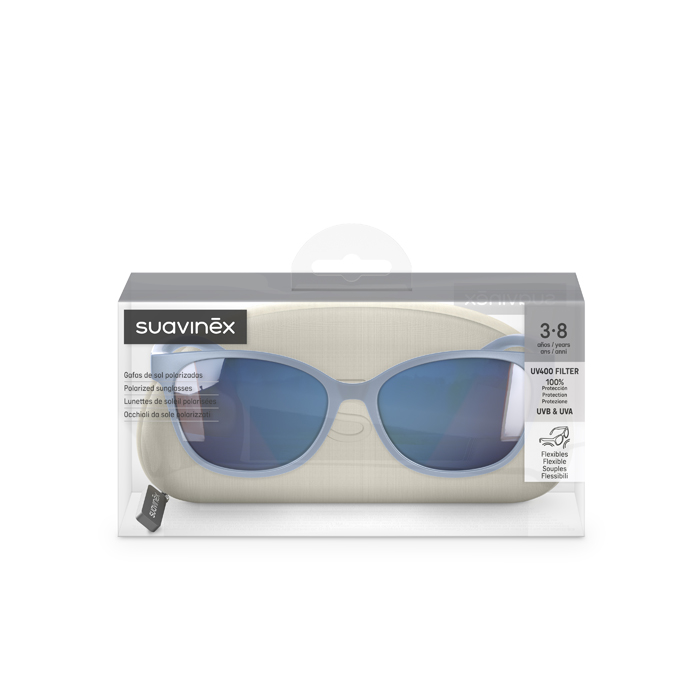 Колекція сонцезахисних окулярів Suavinex поєднує в собі здоров’я та моду. З одного боку, це продукт, спрямований на профілактику, оскільки лінзи окулярів поляризовані фільтрами UV400, з іншого боку, він містить легку гнучку оправу, яка адаптується до обличчя дитини.