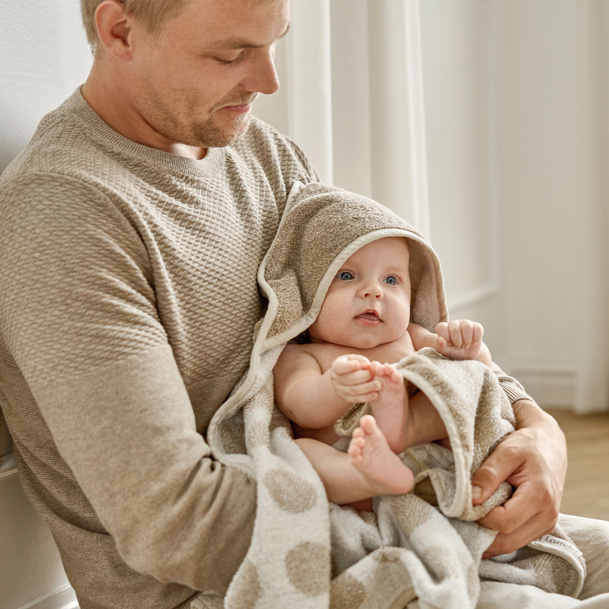 М'який двосторонній дитячий рушник Leander дозволяє легко висушити малюка після купання. Має капюшон, щоб малюкові було тепло і комфортно.