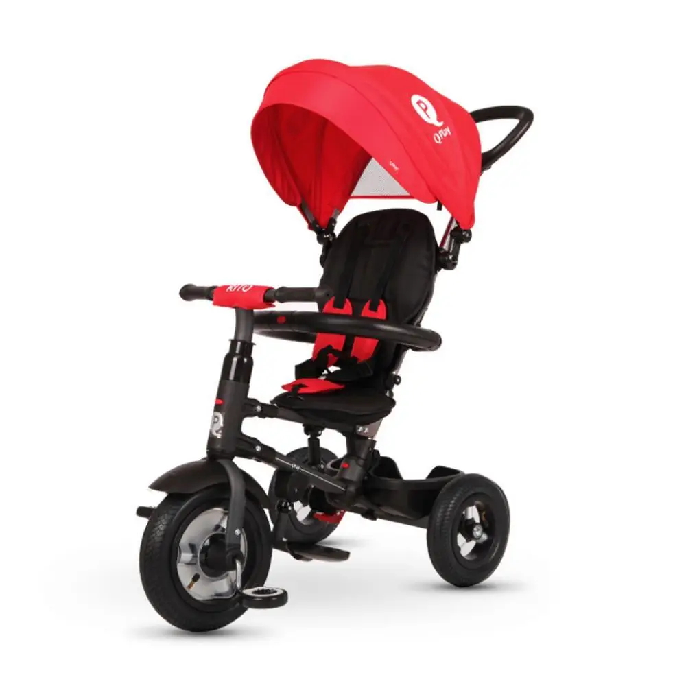 Триколісний велосипед QPlay Rito можна штовхати та контролювати дорослими до тих пір, поки дитина не навчиться їздити. У спекотний сонячний день капюшон захищає дитину, і при необхідності його можна легко демонтувати.