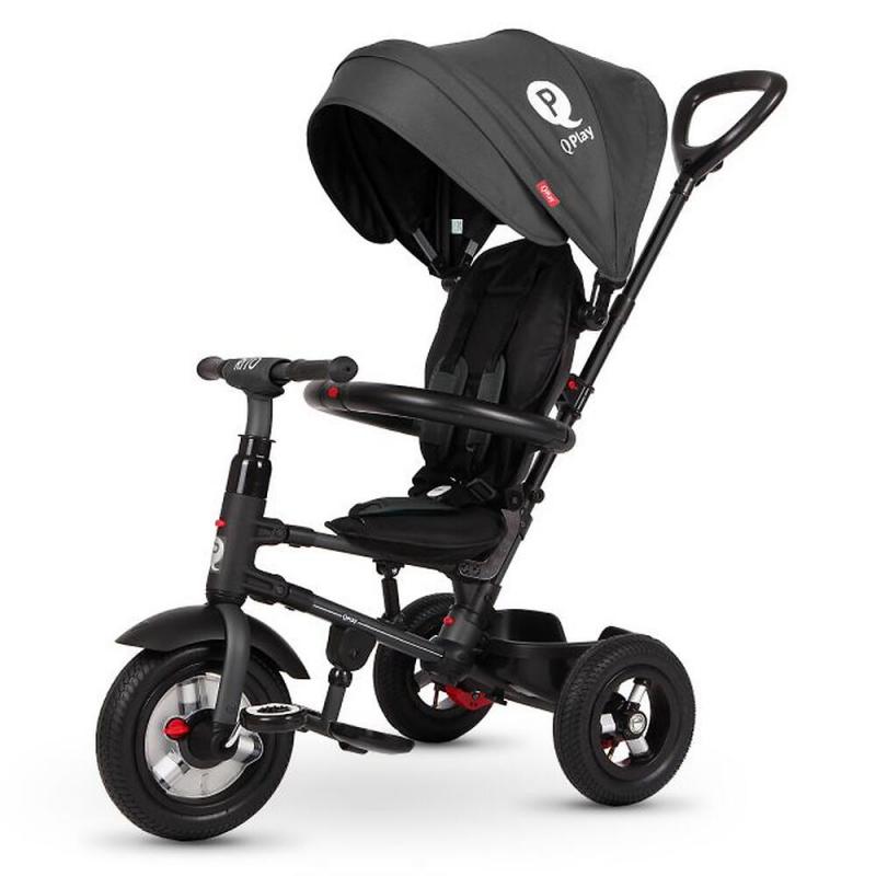 Триколісний велосипед QPlay Rito можна штовхати та контролювати дорослими до тих пір, поки дитина не навчиться їздити. У спекотний сонячний день капюшон захищає дитину, і при необхідності його можна легко демонтувати.