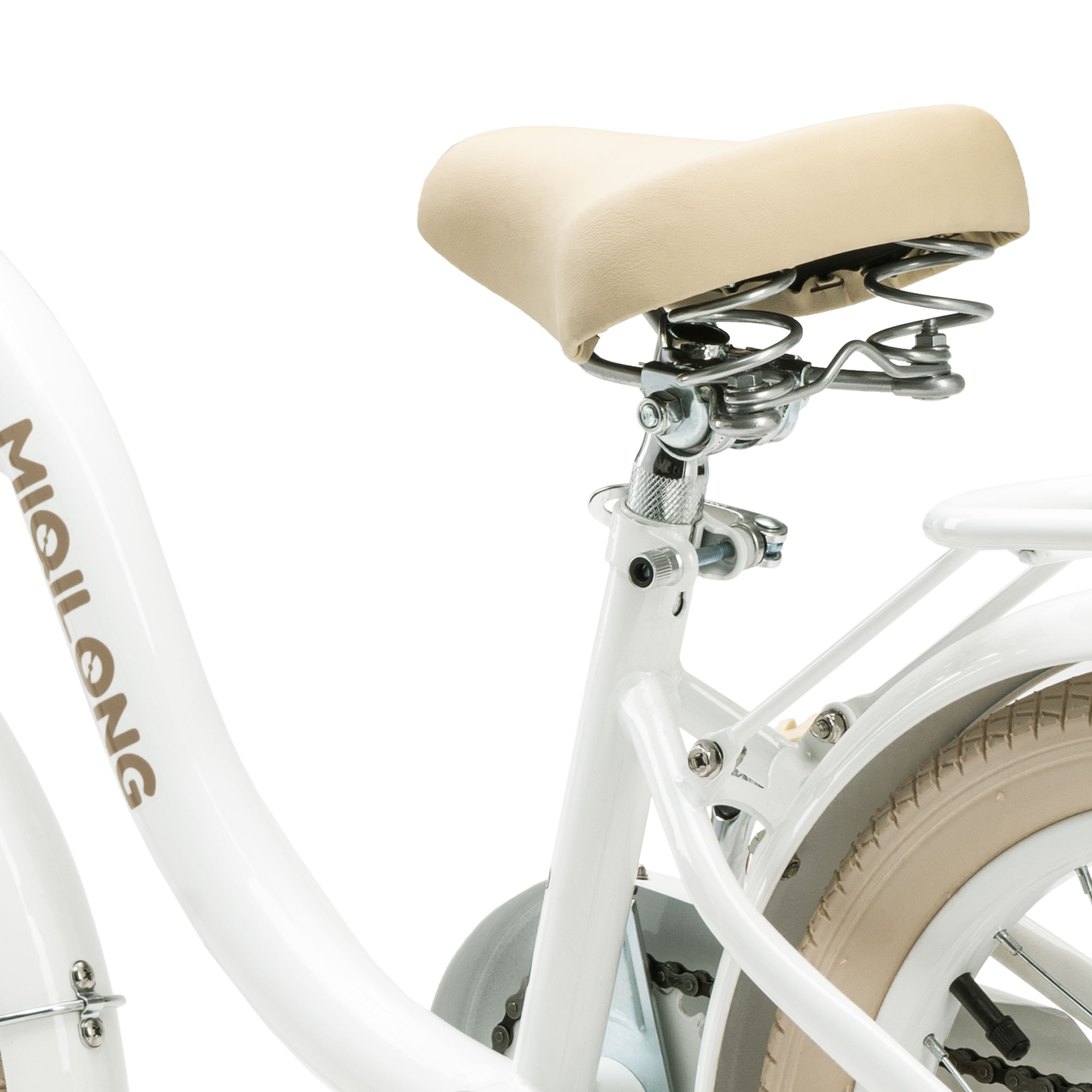 Велосипед для дітей Miqilong LS 16 - це втілення сучасного уявлення про ретро дизайн. Використання фарбування у стилі 50-х років ХХ століття та корзинки ручної роботи з натурального ротангу роблять дизайн велосипеда вишуканим та елегантним.