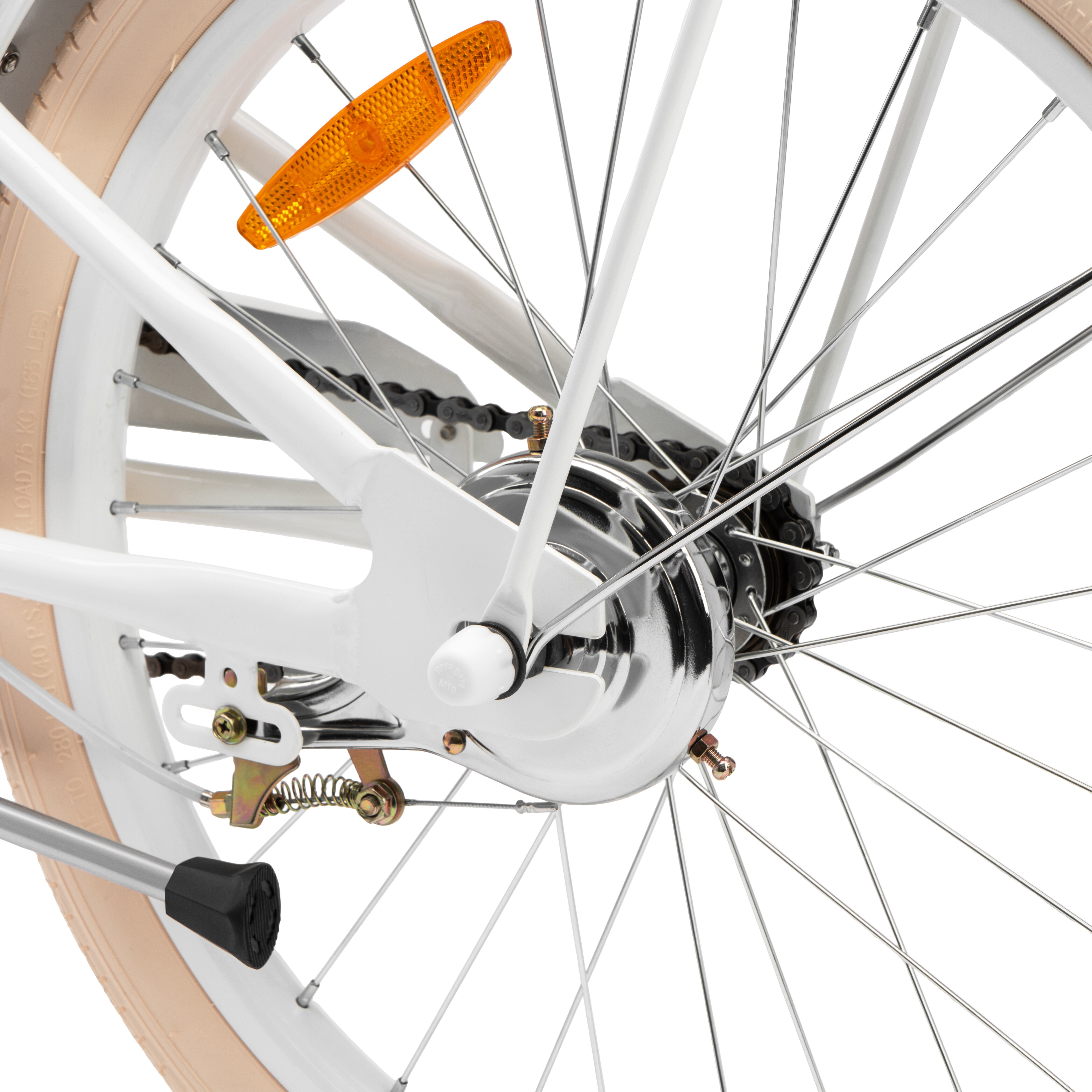 Високий і широкий профіль покришок забезпечать комфортну їзду як по асфальту, так і по нерівностях. Колеса додатково захищені металевими бризговиками, пофарбованими в колір велосипеда, що надійно захистить від бруду і бризок.