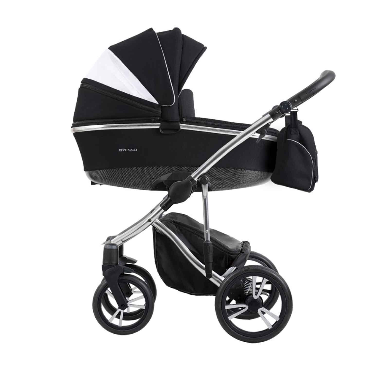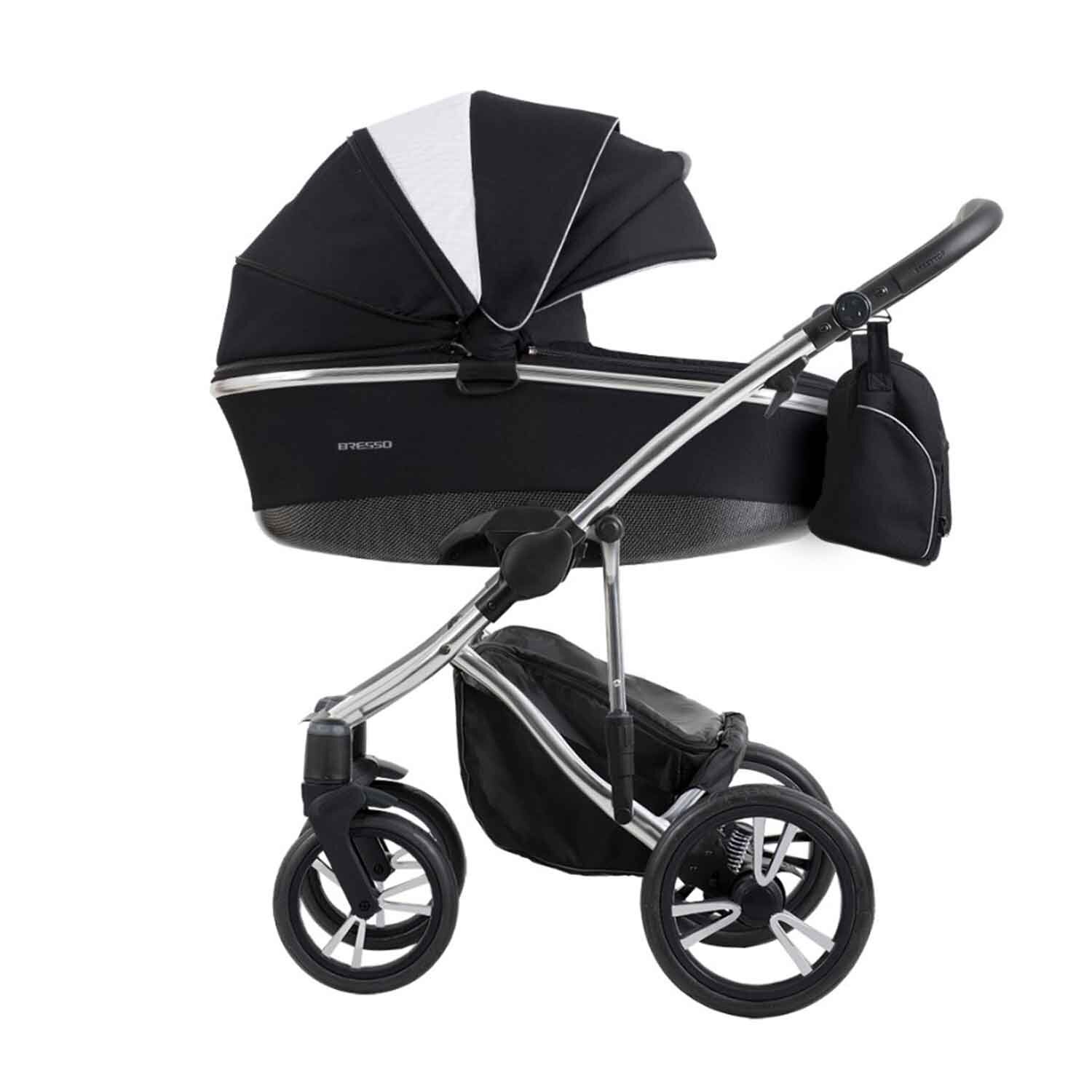 Модель Bresso - це колекція колясок, яка з першого погляду приваблює своєю елегантністю, і в той же час відповідає всім необхідним вимогам, які забезпечують комфорт найвищого рівня. Чорна рама і поєднання тканини і еко-шкіри різних кольорів додають оригінальності дизайну. Рама розроблена таким чином, що забезпечує найкращу амортизацію для дитини, завдяки системі SAS (Shock Absorption System - система поглинання коливань) і DMS (Direction Memory System - система пам'яті напрямку). Люлька розроблена таким чином, щоб забезпечити дитині провітрювання - через вентиляційне віконце-сіточку у верхній частині капюшона, або ж через отвори, які закриваються розсувною решіткою в днищі люльки. Подовжений капюшон-батискаф дає можливість оптимального застосування в залежності від погоди - захищаючи від поривів холодного вітру або занадто сильного сонячного випромінювання. Варто зазначити, що подовження капюшона не вимагає відкриття вентиляційного віконця-сіточки. Оббивка зі вставкою UV50 + забезпечує високий захист від шкідливого ультрафіолетового випромінювання.
