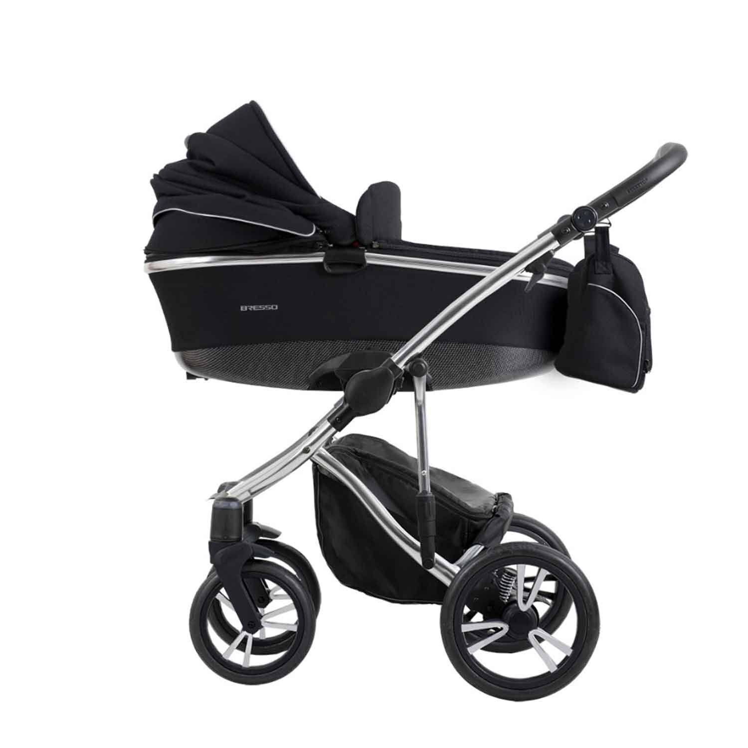 Дизайн Bresso Premium STELLA відрізняється модним в сезоні 2019 поєднанням темних кольорів тканин та глянцевого металу бронзового кольору. Luxury design доповнює дно люльки з высокотехнологічного пластику «під карбон», а також тонкі деталі для декору під колір шасі.