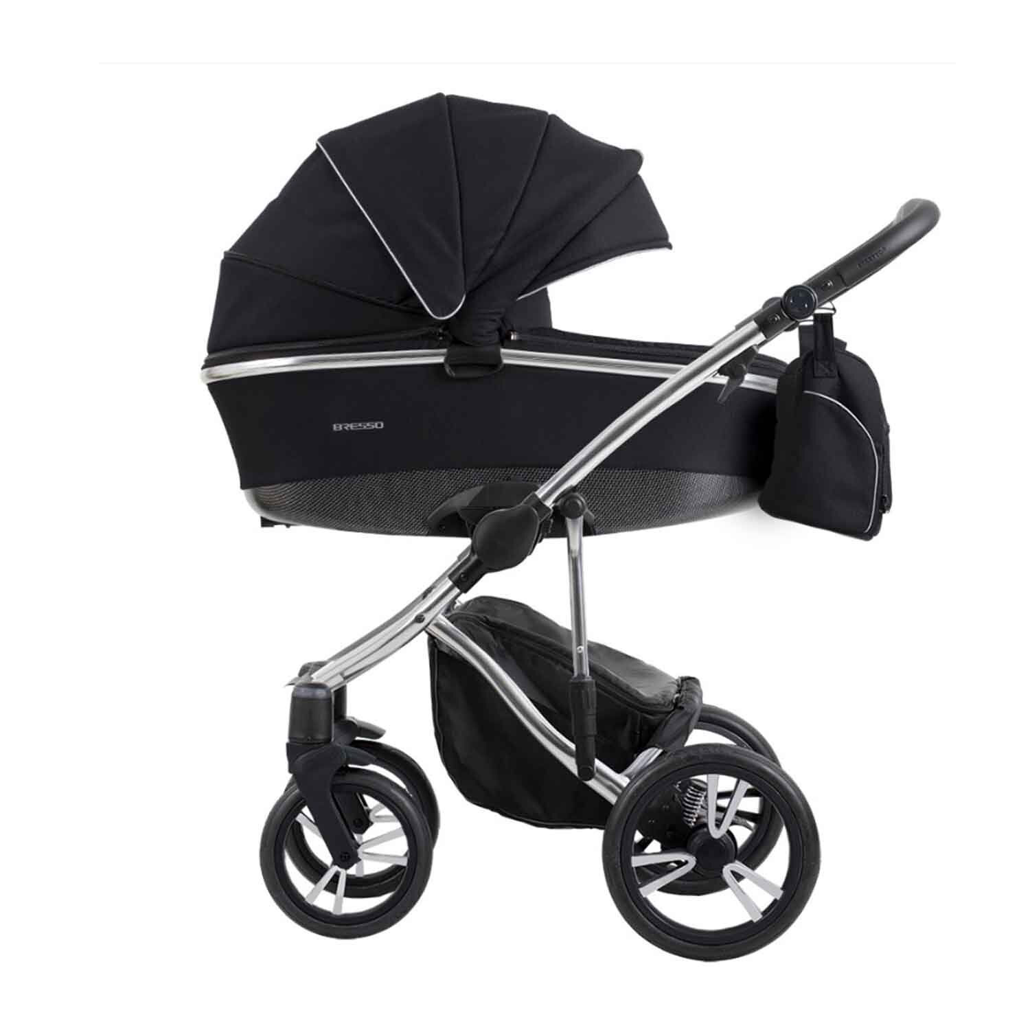 Модель Bresso - це колекція колясок, яка з першого погляду приваблює своєю елегантністю, і в той же час відповідає всім необхідним вимогам, які забезпечують комфорт найвищого рівня. Чорна рама і поєднання тканини і еко-шкіри різних кольорів додають оригінальності дизайну. Рама розроблена таким чином, що забезпечує найкращу амортизацію для дитини, завдяки системі SAS (Shock Absorption System - система поглинання коливань) і DMS (Direction Memory System - система пам'яті напрямку). Люлька розроблена таким чином, щоб забезпечити дитині провітрювання - через вентиляційне віконце-сіточку у верхній частині капюшона, або ж через отвори, які закриваються розсувною решіткою в днищі люльки. Подовжений капюшон-батискаф дає можливість оптимального застосування в залежності від погоди - захищаючи від поривів холодного вітру або занадто сильного сонячного випромінювання. Варто зазначити, що подовження капюшона не вимагає відкриття вентиляційного віконця-сіточки. Оббивка зі вставкою UV50 + забезпечує високий захист від шкідливого ультрафіолетового випромінювання.