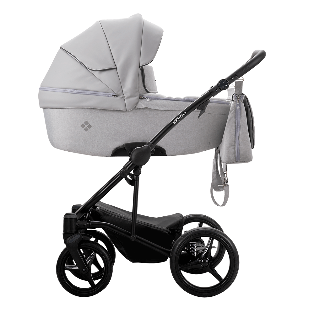Комплектація коляски Bebetto Torino: Рама з колесами; Люлька з матрациком; Чохол для ніг в люльку; Прогулянковий блок; Чохол для ніг до прогулянкового сидіння; Тримач для пляшечки; Дощовик; Москітна сітка; Сумка для мами; Може комплектуватись автокріслом (замовляється окремо).