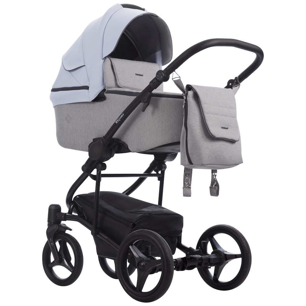 Комплектація коляски Bebetto Torino: Рама з колесами; Люлька з матрациком; Чохол для ніг в люльку; Прогулянковий блок; Чохол для ніг до прогулянкового сидіння; Тримач для пляшечки; Дощовик; Москітна сітка; Сумка для мами; Може комплектуватись автокріслом (замовляється окремо).