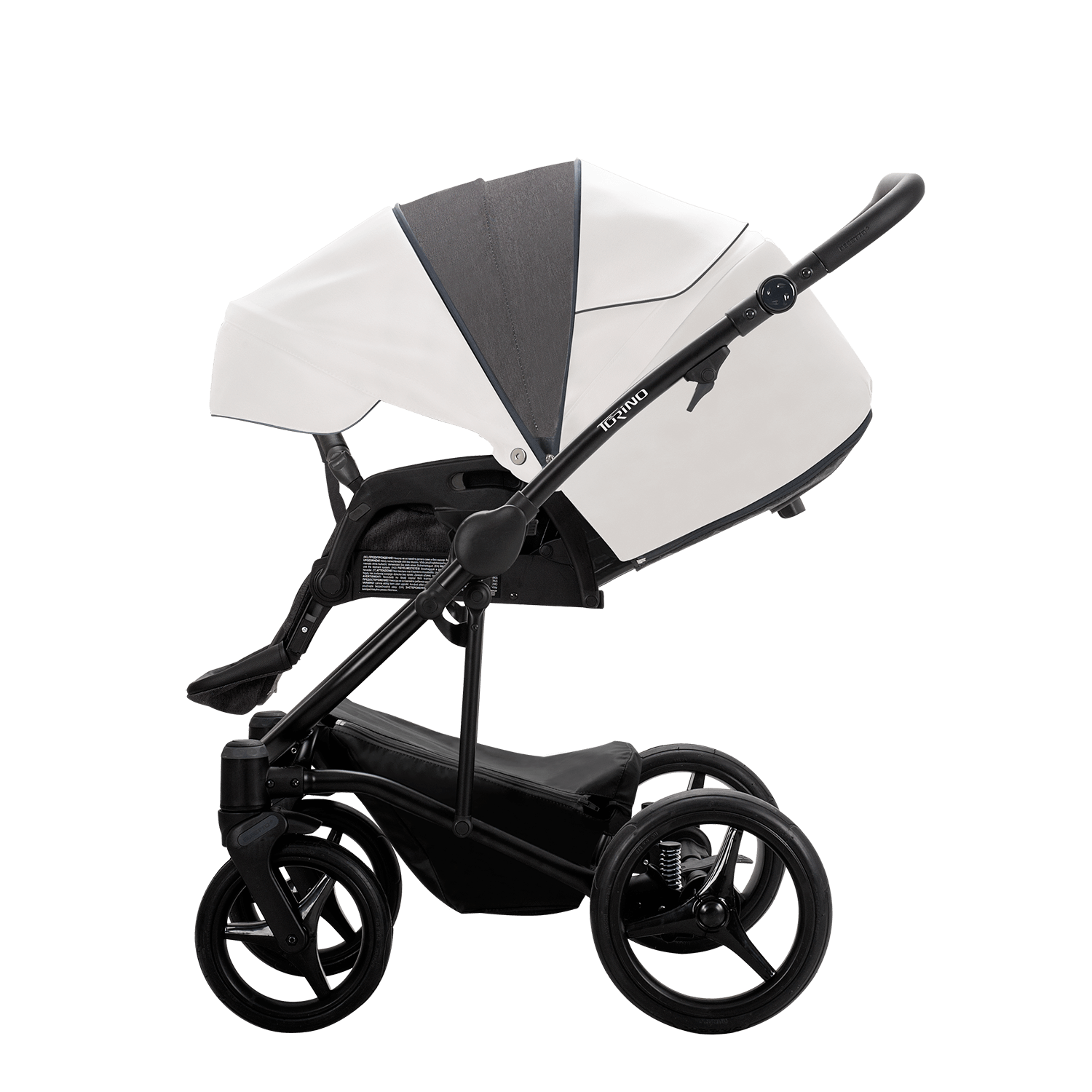 Характеристики коляски Bebetto Torino: Міцна конструкція з алюмінієвого сплаву, легко складається; Автоматичне блокування рами для захисту від випадкового складання; Швидкоз'ємні зносостійкі та непробивні колеса; Передні колеса поворотні на 360⁰ з фіксацією прямого керування; Задні колеса оснащені пружинною амортизацією з регулюванням жорсткості; Функція антишок на передніх колесах поглинає удари при зіткненні з перешкодами; Функція DMS запам’ятовує та фіксує положення поворотних коліс при відриві від землі; Зручне гальмо Stop&Go; Регульована по висоті ручка; Внутрішня оббивка люльки з натуральних тканин та матрациком; На капюшоні люльки є вентиляційне віконце та сонцезахисний висувний козирок; Підголівник регулюється із зовнішньої сторони; Чохол для ніг обладнаний захисним відворотом; Прогулянковий блок кріпиться реверсивно; Регульований капюшон обладнаний вентиляційним віконцем, додатковою секцією на блискавці та висувним козирком; Спинка опускається до лежачого положення; Регульована підніжка; Захисний бампер; Регульовані 5-и точкові ремені безпеки з м’якими накладками на плечі; Кошик для покупок.
