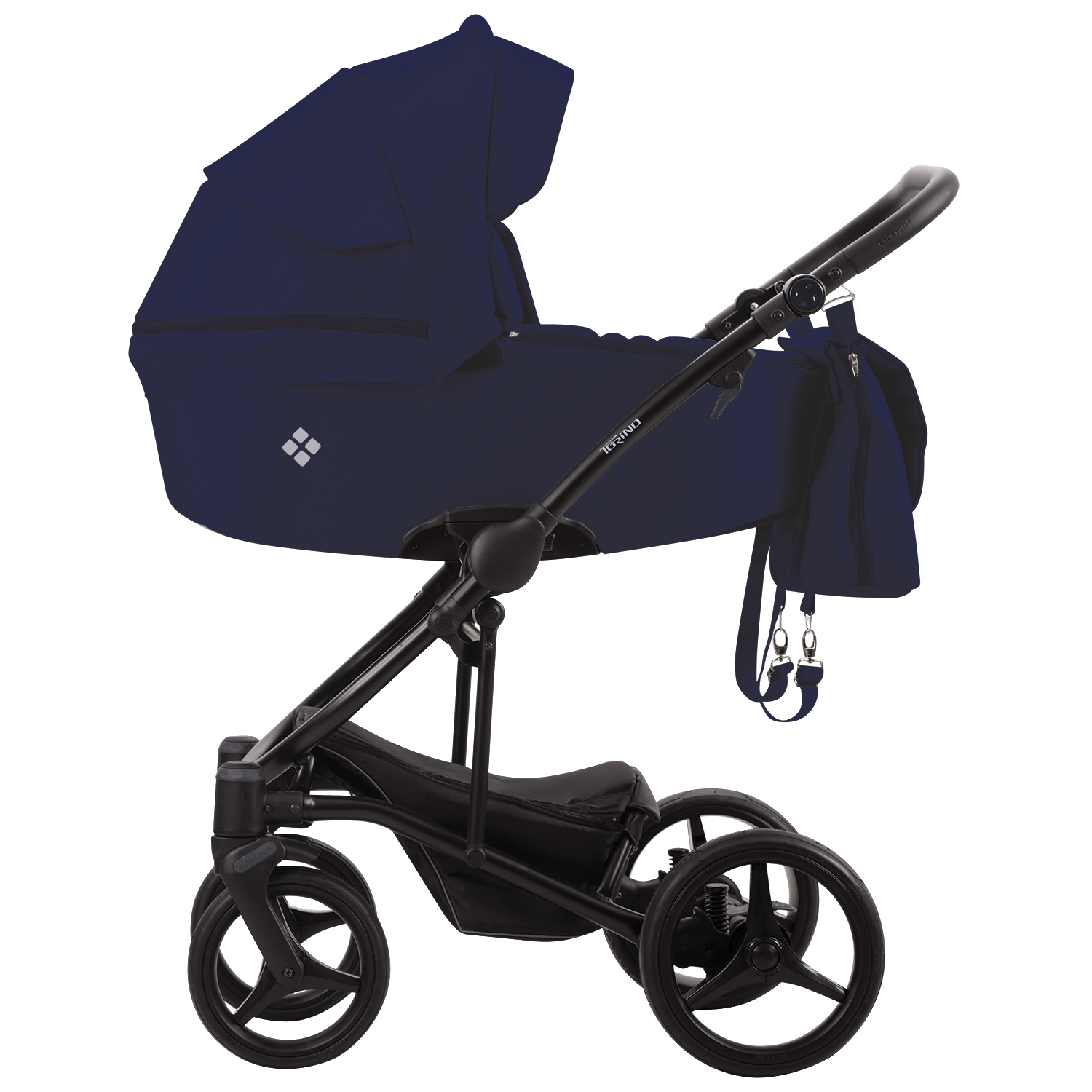 Комплектація коляски Bebetto Torino: Рама з колесами; Люлька з матрациком; Чохол для ніг в люльку; Прогулянковий блок; Чохол для ніг до прогулянкового сидіння; Тримач для пляшечки; Дощовик; Москітна сітка; Сумка для мами; Може комплектуватись автокріслом (замовляється окремо).