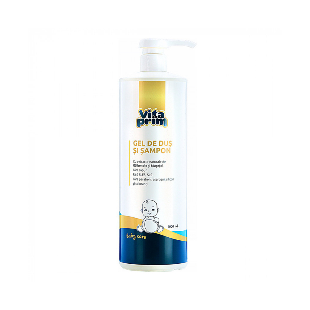Шампунь і гель для душу Vitaprim для щоденного догляду за чутливим волоссям і шкірою немовлят і дітей. Ніжно очищає тіло та волосся, містить натуральні екстракти календули та ромашки, які надають додатковий антиоксидантний захист і мають протизапальні властивості. Екстракт ромашки пом'якшує й захищає шкіру, знімає подразнення.
