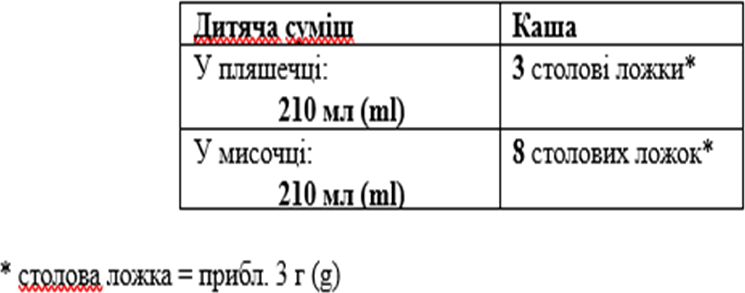 Спосіб приготування: У пляшечці: додайте необхідну кількість каші до теплої дитячої суміші. (На 210 мл — 3 столові ложки каші*). У мисочці: додайте необхідну кількість каші до теплого дитячого молочка. (На 210 мл — 8 столових ложок каші*). Після завершення годування, невикористані залишки викинути.