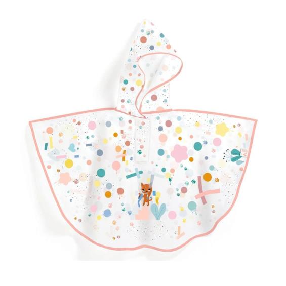 Вирушимо на веселу прогулянку під дощем! Елегантна та практична накидка від дощу з капюшоном для дітей від 3 до 5 років. Дощовичок м'який та еластичний, тому його приємно носити та в ньому легко рухатися дітям. Кнопки також полегшують його надягання. Ідеально комбінується з парасолькою "Кошенята". Розмір S (80 x 46 см).