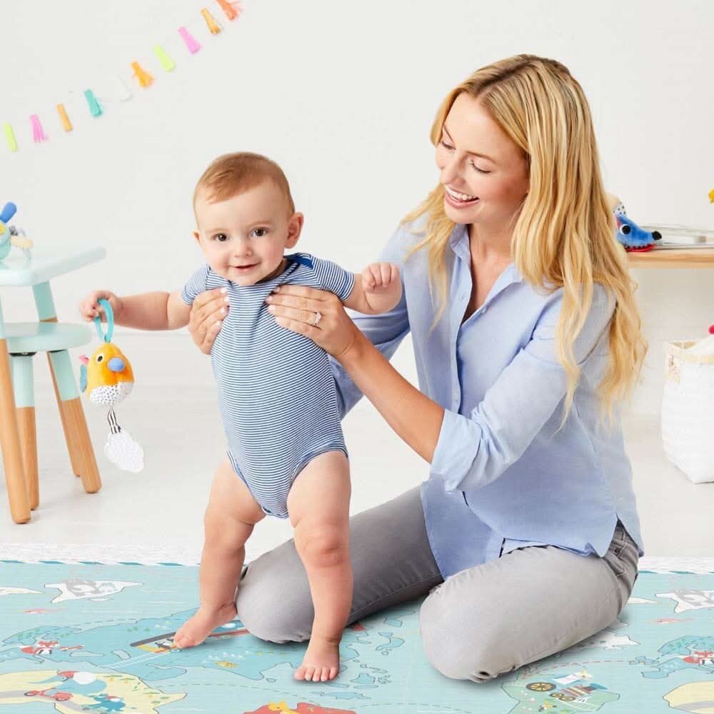 Двосторонній дитячий ігровий килимок Skip Hop Little Travelers - ідеальне рішення для батьків, які цінують комфорт і дизайн. Завдяки двом варіантам використання, цей килимок змінюється з малюнку, на мінімалістичний принт, що дозволяє легко поєднувати його з будь-яким інтер'єром. Ігровий килимок виготовлений з безпечного для дітей матеріалу, який не містить ПВХ, і забезпечує великий простір для ігор як у вітальні, так і в дитячій кімнаті. Крім того, його легко скрутити для зручного транспортування та зберігання.