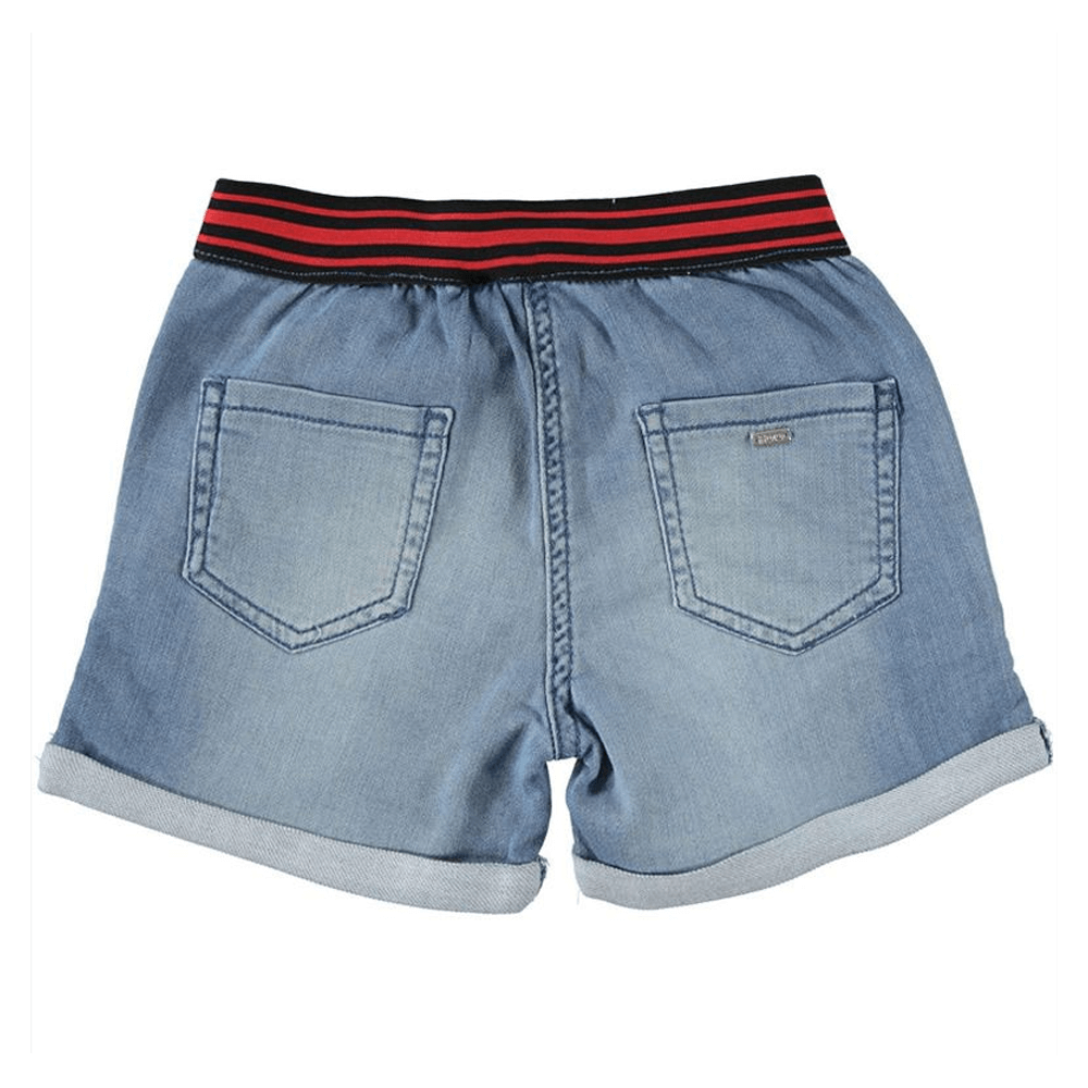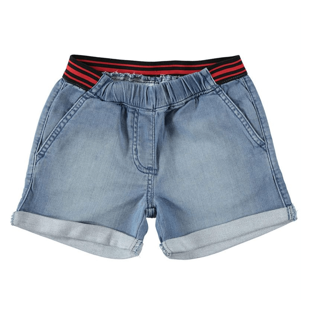 Короткі літні шорти від iDO для дівчинки 6 - 7 років виготовлені з легкого, трохи потертого деніму. Модними модель роблять вилоги, смугастий червоно-чорний пояс-гумка. Є передні і задні кишені. Річ, яку ваша дівчина не захоче знімати!