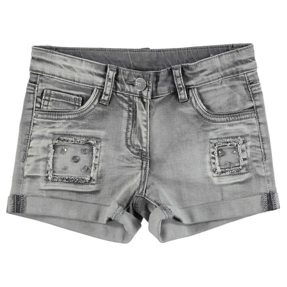 Короткі шорти від iDO для дівчинки 10 - 11 років виготовлені з легкого еластичного деніму з гарними квадратними латками, вкритими стразами. Шорти мають легку потертість. Талія регулюється гумкою з петлею з внутрішніми ґудзиками, є застібка-блискавка. Практичними шорти роблять передні і задні кишені, вилоги. Річ, яку ваша дівчина не захоче знімати!