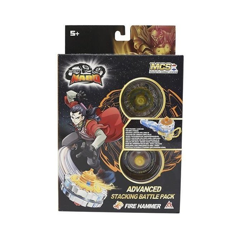 Відкрийте для себе нові складаються дзиги Infinity Nado! За допомогою магнітного лаунчера підсильте спіннер, перш ніж запустити його на арену. Щоб увійти в режим атаки, додайте додаткове кільце на дзигу: за допомогою магнітного лаунчера, щоб встановити кільце на спіннер під час бою на арені, щоб підвищити потужність і швидкість. Коли ваш спіннер сповільниться, ви можете посилити його під час бою на арені і додати велику швидкість! Спробуйте нову стратегію, складаючи нові кільця (продаються окремо) на спіннері, щоб збільшити їх силу проти вашого супротивника. Набір складається з магнітного лаунчера, металевої підстави, що обертається, металевого кільця, яке можна додати під час бою, і інструменту для зборки.