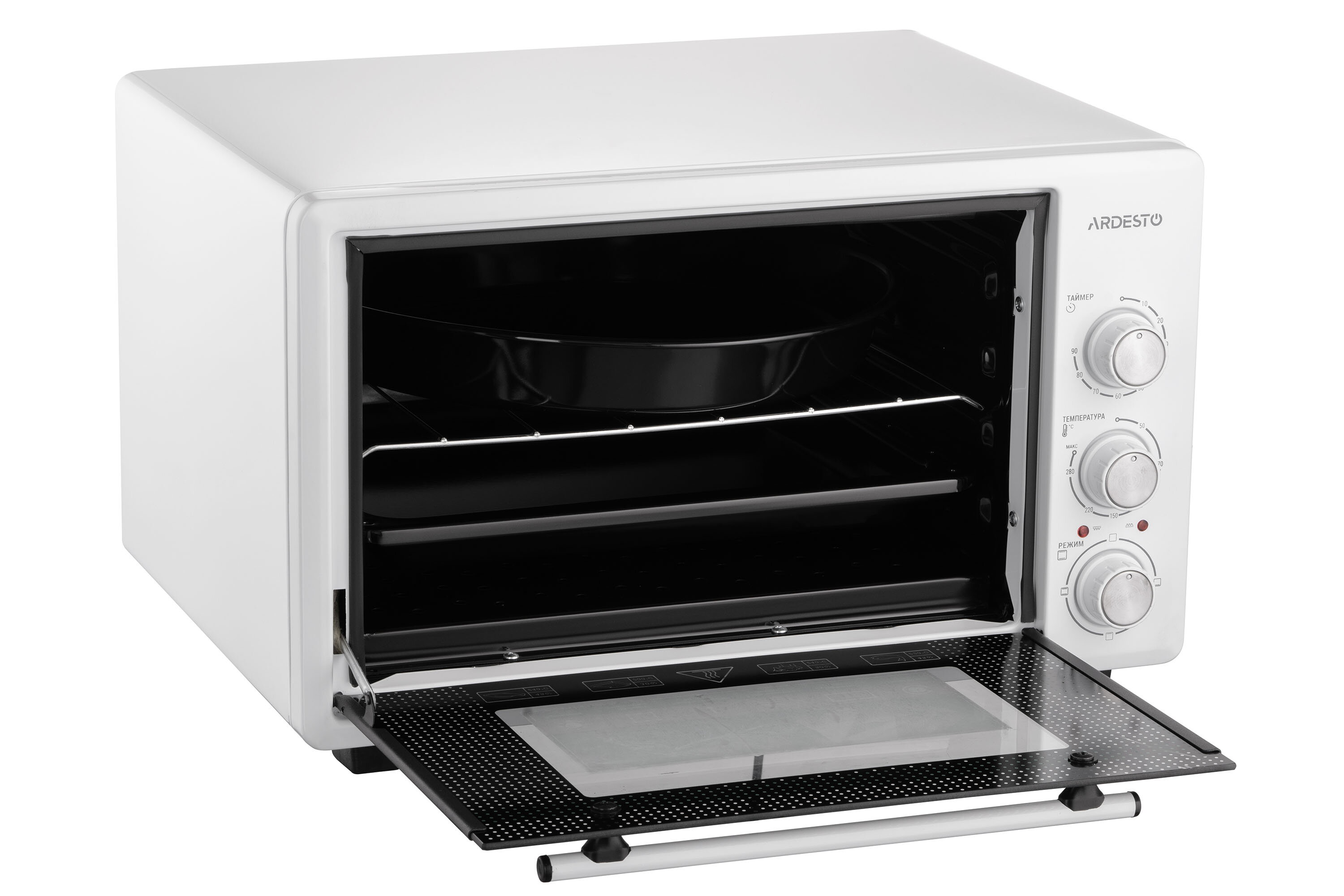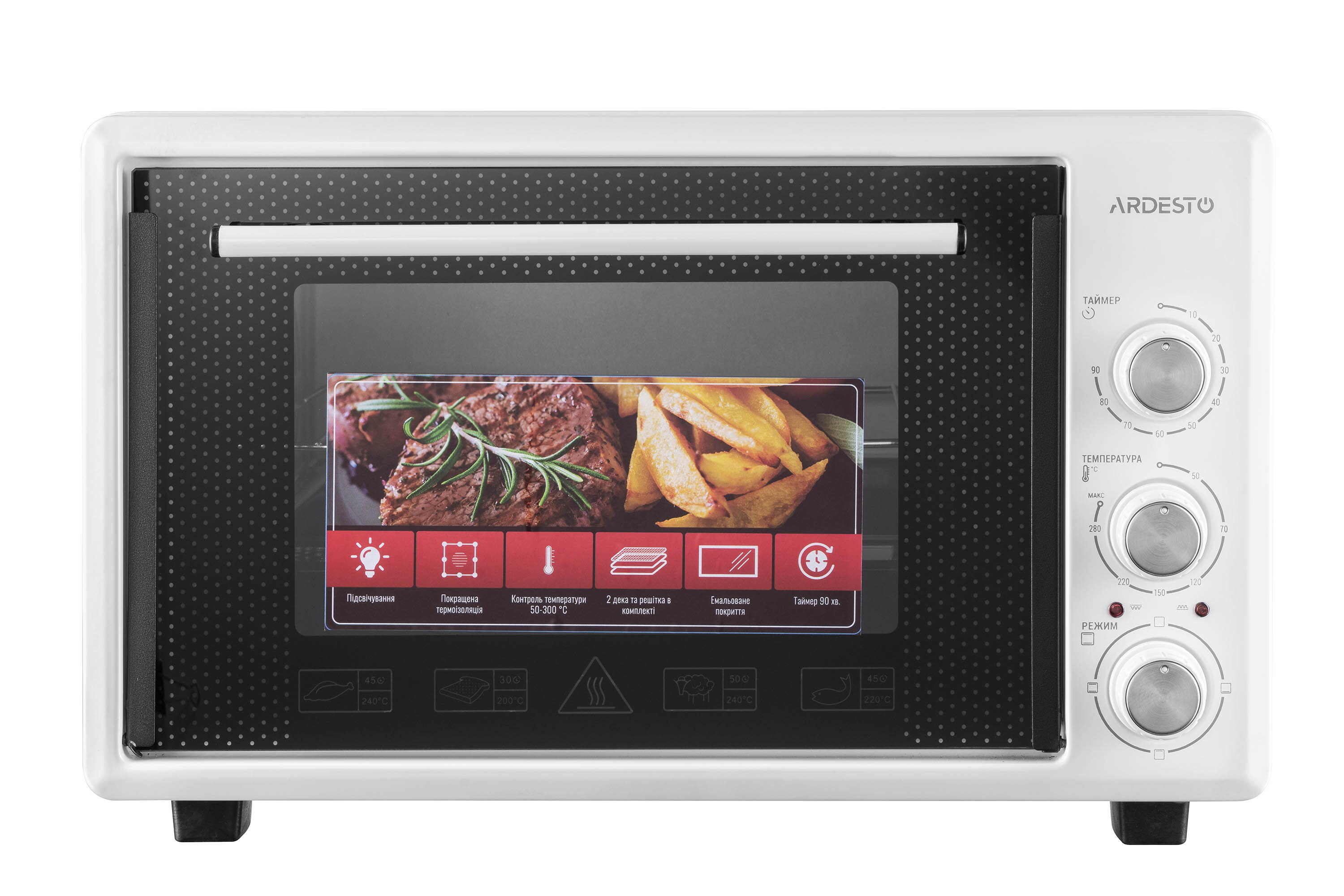 З огляду на компактні габарити (345 × 518 × 400 мм) електропіч займатиме мінімум місця на кухонній поверхні, залишаючи достатньо вільного робочого простору, тому модель є вдалим вибором навіть для маленьких кухонь. До того ж вона оснащена трьома режимами приготування та таймером до 90 хвилин.