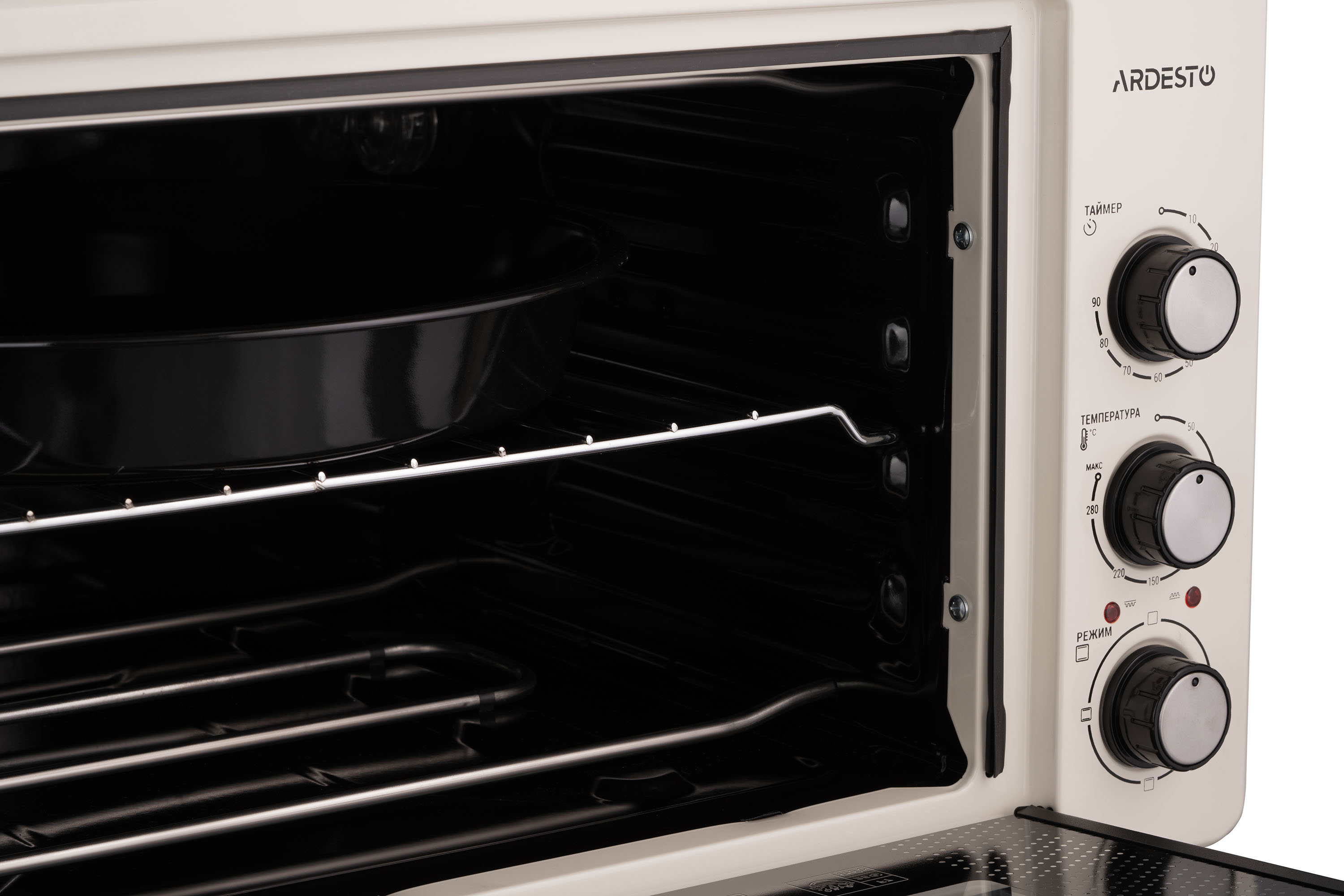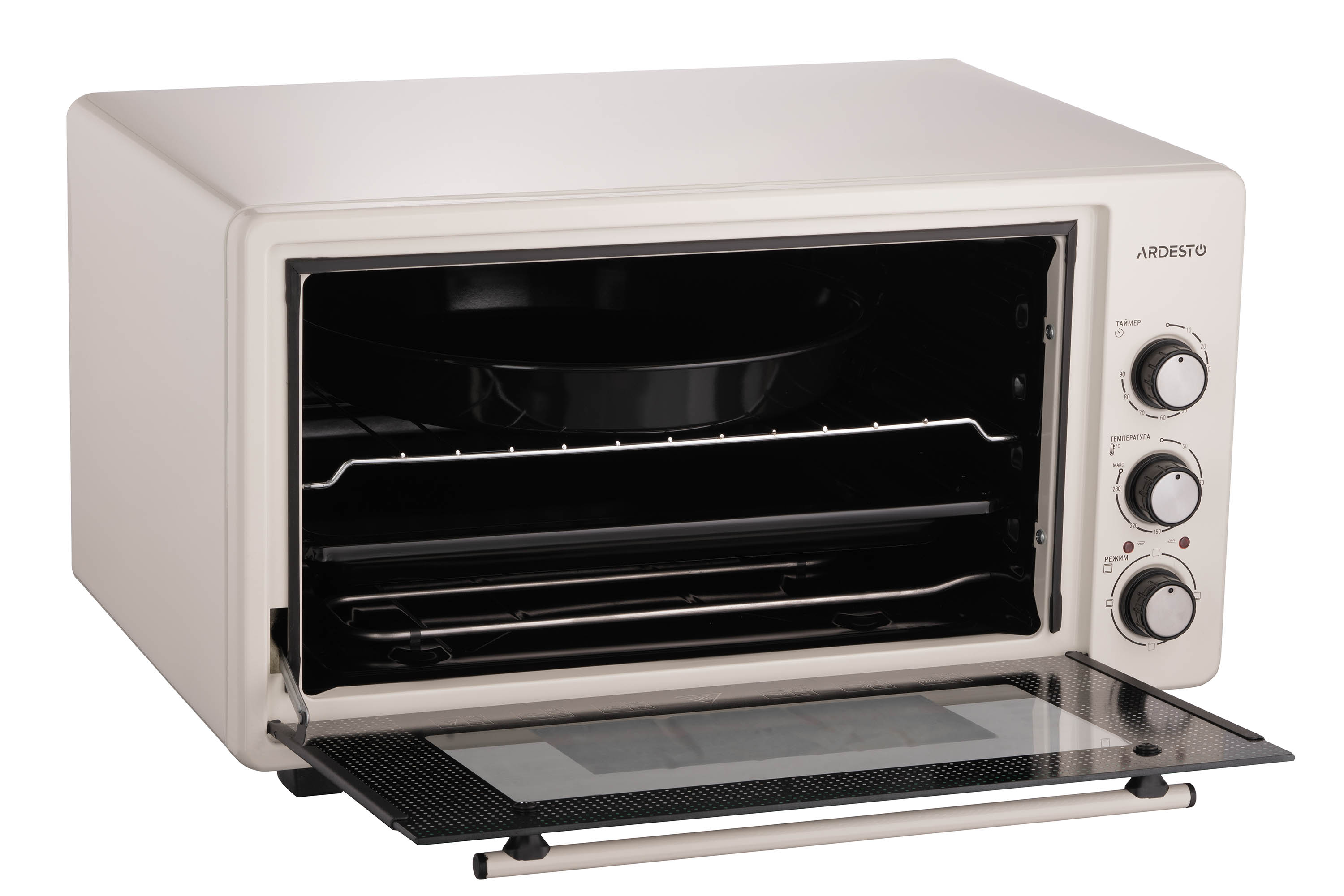 • Вдале поєднання бежевого кольору корпусу з обтічними контурами й затемненого скла на дверцятах додає моделі MEO-S45GBG виразної елегантності. З огляду на це піч пасуватиме чи не до будь-якого стилю кухонної зони. Крім стильного дизайну, модель вирізняється доволі ємною внутрішньою камерою (45 л) і гідною потужністю – 1 600 Вт.