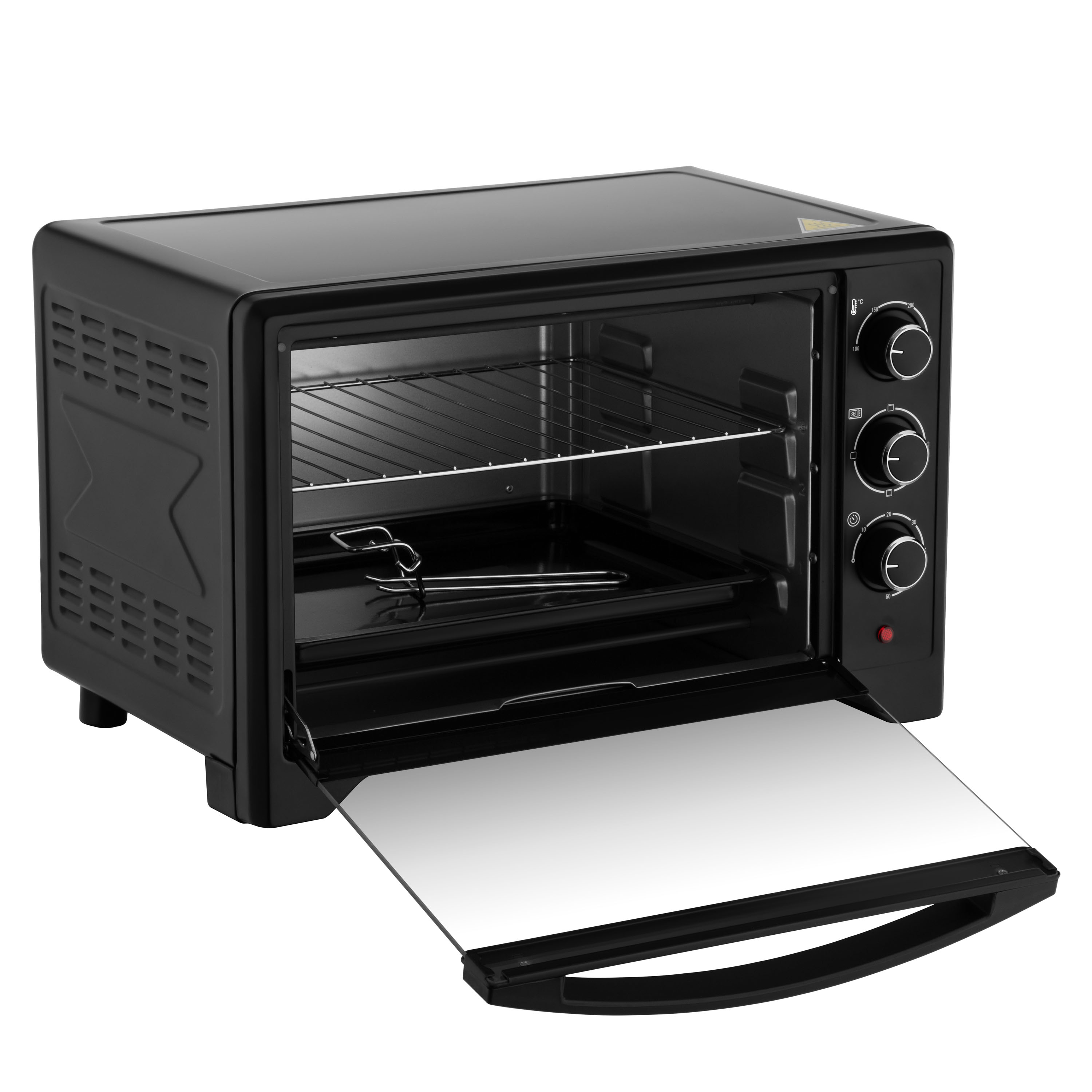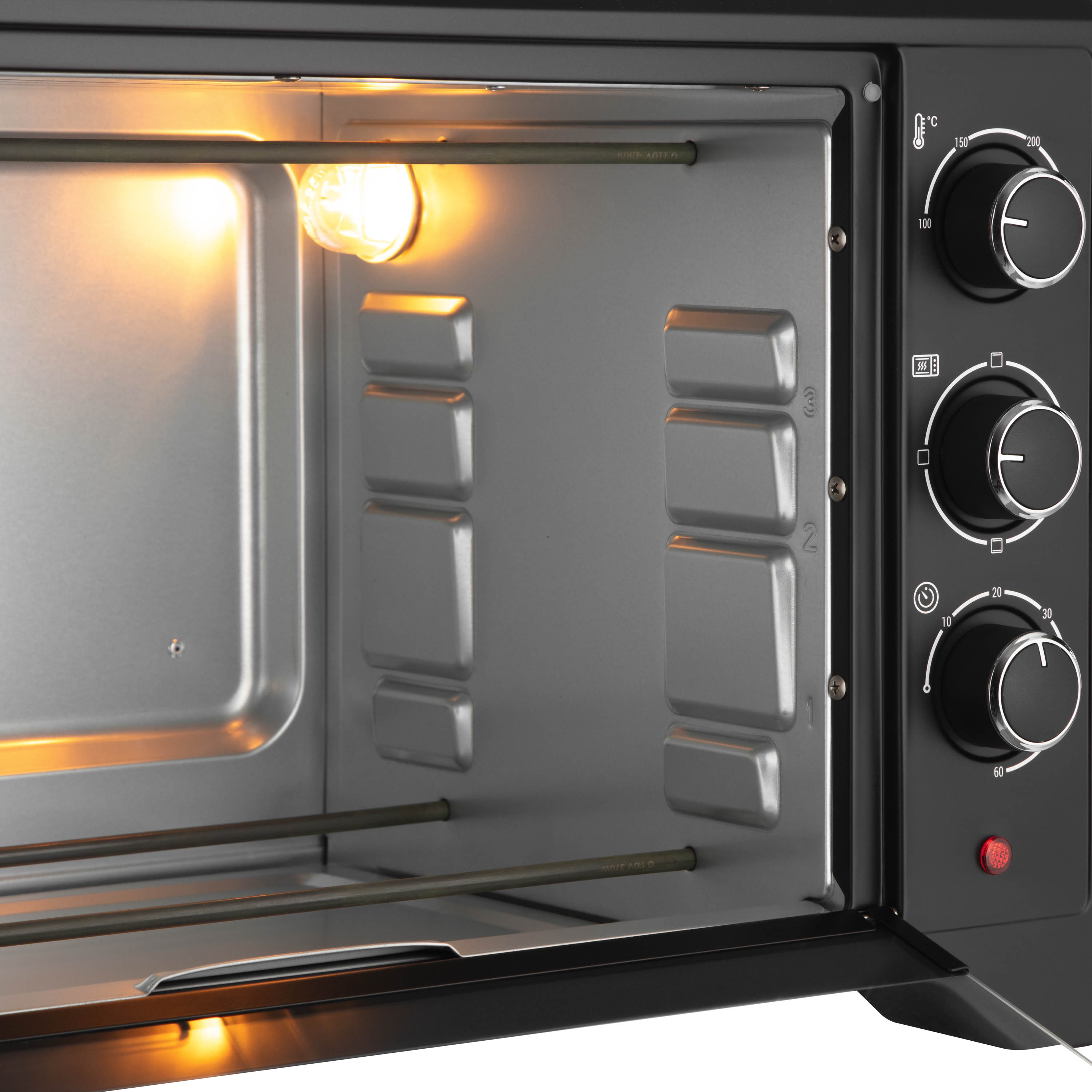 Додатково 3 положення підставки, нековзні ніжки, дверцята із загартованого скла, нагрівальні елементи з нержавіючої сталі