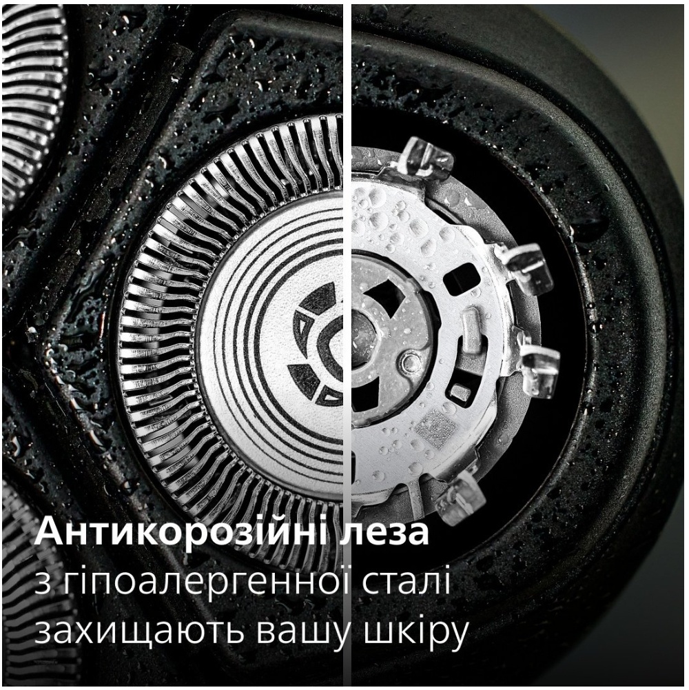 Згинаючись і обертаючись у п'яти напрямках, голівка повторює кожен вигин вашого обличчя – зрізаючи щетину трохи вище рівня шкіри для чистого, комфортного гоління навіть чутливої шкіри.