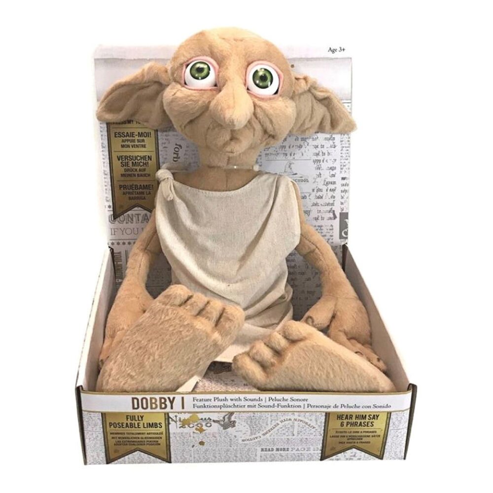 Чудовий подарунок для всіх шанувальників саги про Гаррі Поттера — кумедний ельф-домовик Добі від торгової марки Wizarding World. Персонаж виконаний з приємного на дотик текстилю з хорошими зносостійкими властивостями. Ельф відтворює 6 популярних фраз з фільму, що обов'язково порадує дитину та урізноманітнить сюжетно-рольову гру. Добі ретельно деталізований і є точною копією свого оригінального прототипу. Висота іграшки становить 40 см.