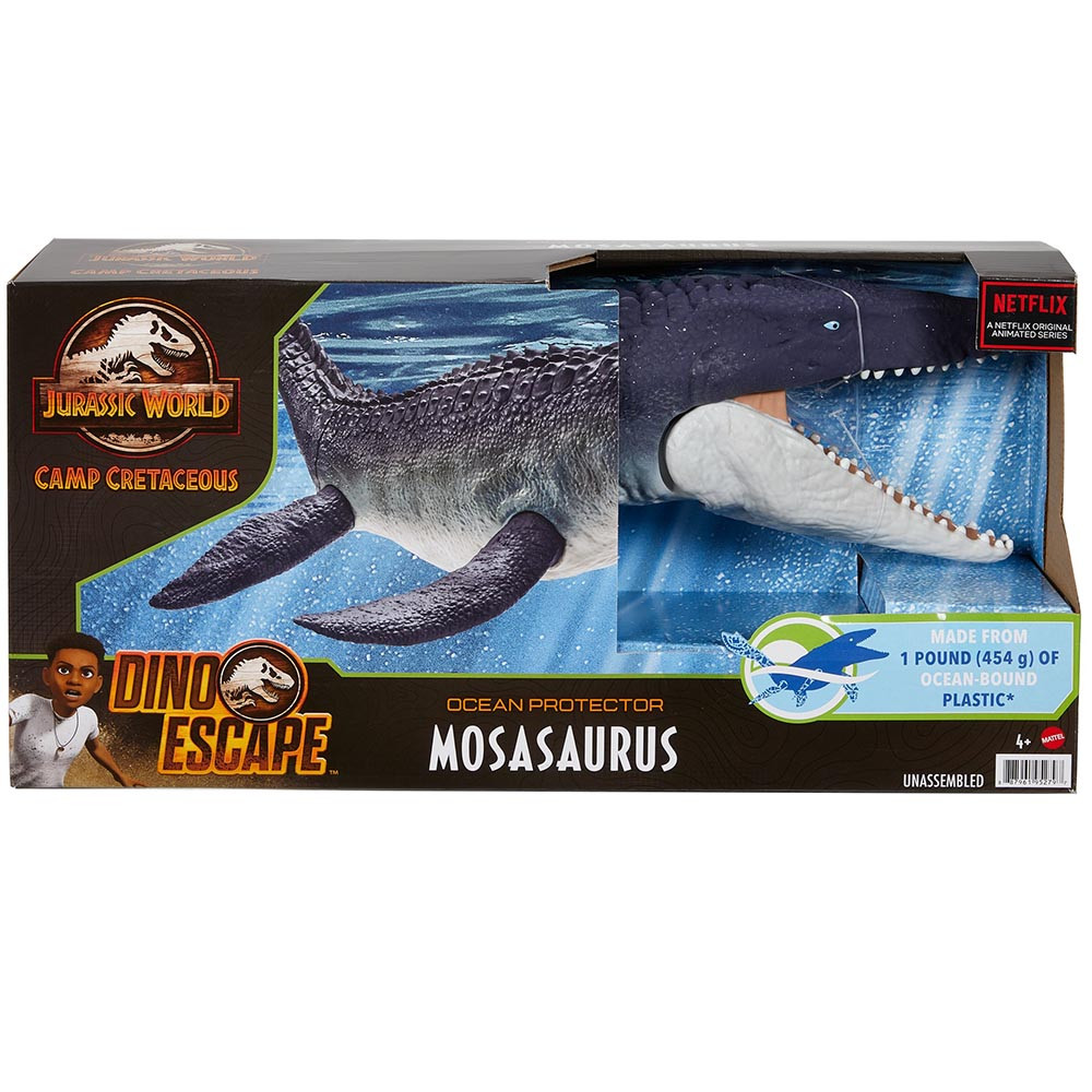 Великий Мозазавр Світ Юрського Періоду Jurassic World Real Feel Mosasaurus оживить пригоди з великого екрану! Будьте готові до захоплюючих дій і пригод разом з Мозазавром зі Світу Юрського Періоду від Mattel, Пережити захоплюючі моменти з фільмів та захоплюючі сцени з цією лінійкою динозаврів натхнених фільмами, з автентичними деталями, вражаючим дизайном і надзвичайною цінністю, які сподобаються всім дітям і шанувальникам Jurassic World.