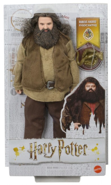 Ляльки, створені на основі фільму про Гаррі Поттера. Лялька Рубеус Геґрід має такий самий вигляд, як його персонаж у фільмах про Гаррі Поттера, й одягнена у своє звичайне вбрання, сорочку з ременем і жилет, штани та туфлі.