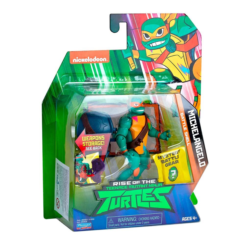 Фігурка TMNT Мікеланджело із бойовим панциром із серії «Еволюція Черепашок-ніндзя» виконана за мотивами однойменного американського 2-D мультсеріалу. Мікеланджело — коробчаста черепаха. Наймолодший із братів. Носить помаранчеві пов'язки. В бою користується кусарі-фундо.