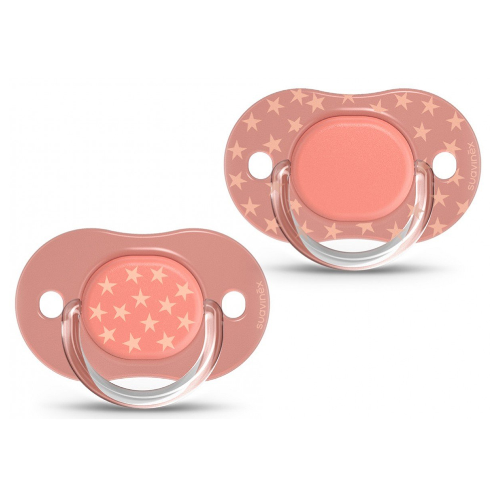 Пустушка Suavinex Basics від іспанського бренду має анатомічну форму, що імітує жіночий сосок. Вона легка та безпечна, бо виготовлена з медичного силікону та поліпропілену. Матеріали не містять шкідливі речовини, у тому числі і бісфенол А. Має яскравий дизайн та отвори, що попереджають накопичення слини біля рота.
