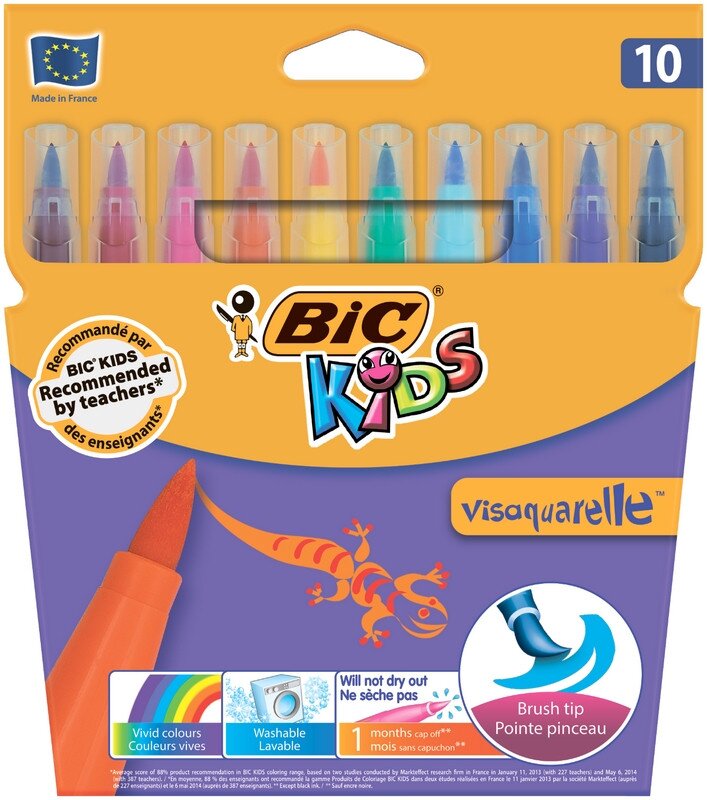 Фломастери BIC безпечні для дітей, не містять шкідливих речовин, легко змиваються з рук і одягу навіть холодною водою з милом. Система блокування писального вузла — не гнуться й не втягуються при натиску. Вентильований ковпачок.