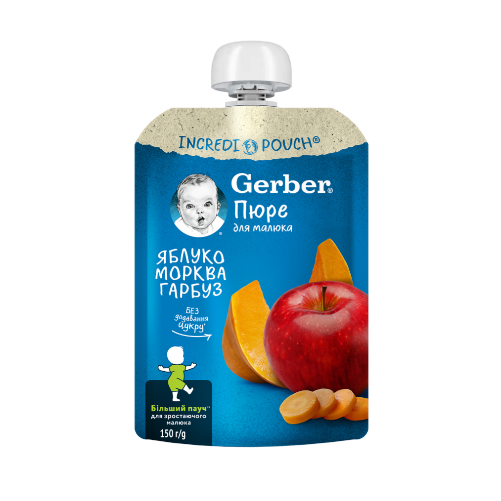 Фруктові пюре Gerber у зручній м’якій упаковці – це 100% натуральних фруктів + вітамін С! М'яку упаковку "пауч" легко брати на прогулянку, в подорож чи в гості. До того ж, вона сприяє розвитку навичок самостійності у малюка.