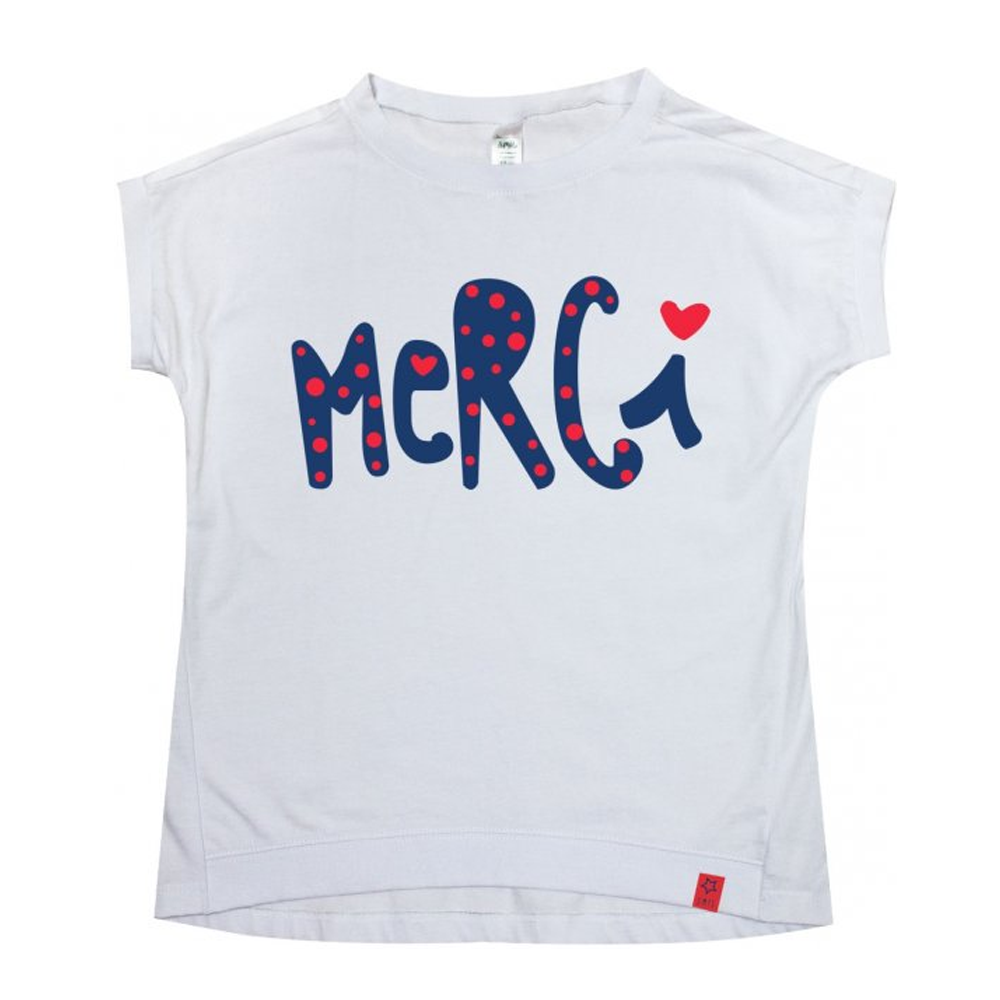 Біла базова футболка для дівчат молодшого шкільного віку. Пошита з легкого бавовняного трикотажу. Прикрашена яскравим принтом. Відмінне вбрання на кожен день - з шортами, спідницею, джинсами.