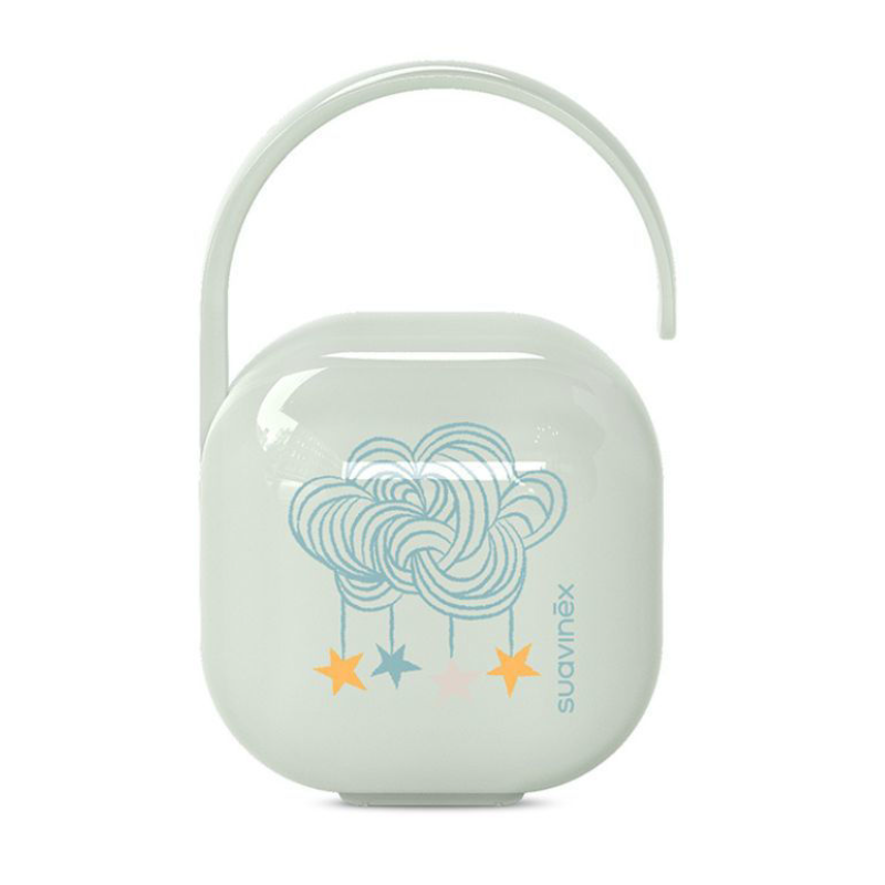 Футляр для пустушки Suavinex Dreams від іспанського бренду створений для немовлят від народження. Він легкий і безпечний. Виготовлений з міцного пластику без вмісту токсичних речовин. Оснащений гачком для навішування на дитячому візочку, стільчику для годування, колисці, тощо. Має яскравий дизайн. Допомагає підтримувати пустушку в чистоті. Зручний контейнер для зберігання.