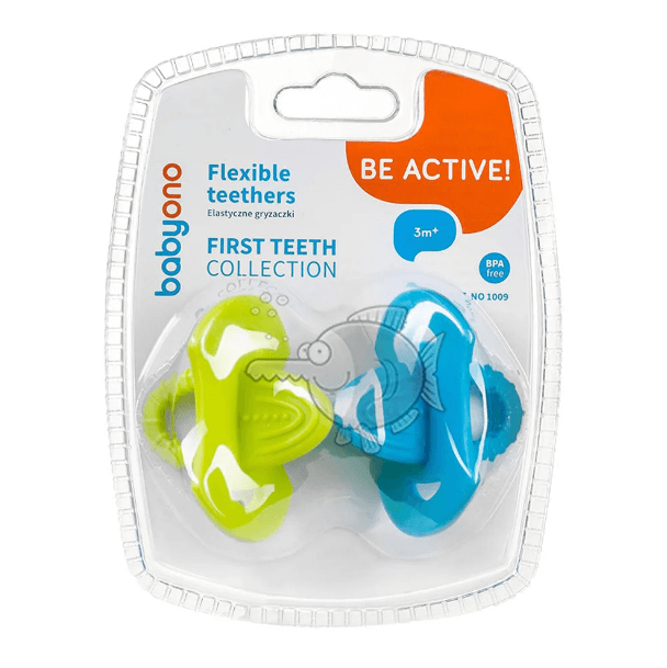 "Мій перший прорізувач" BabyOno - помічник, що допоможе справитися з дитячим болем при прорізуванні перших зубів. Виготовлений з щільного еластичного матеріалу. Має ручку-кільце для зручного утримання. За конфігурацією прорізувач схожий на пустушку, що спрощує малюкові знайомство з новим аксесуаром. Завдяки рельєфній поверхні гризунець добре масажує ясна, поліпшуючи кровообіг у м'яких тканинах ротової порожнини.