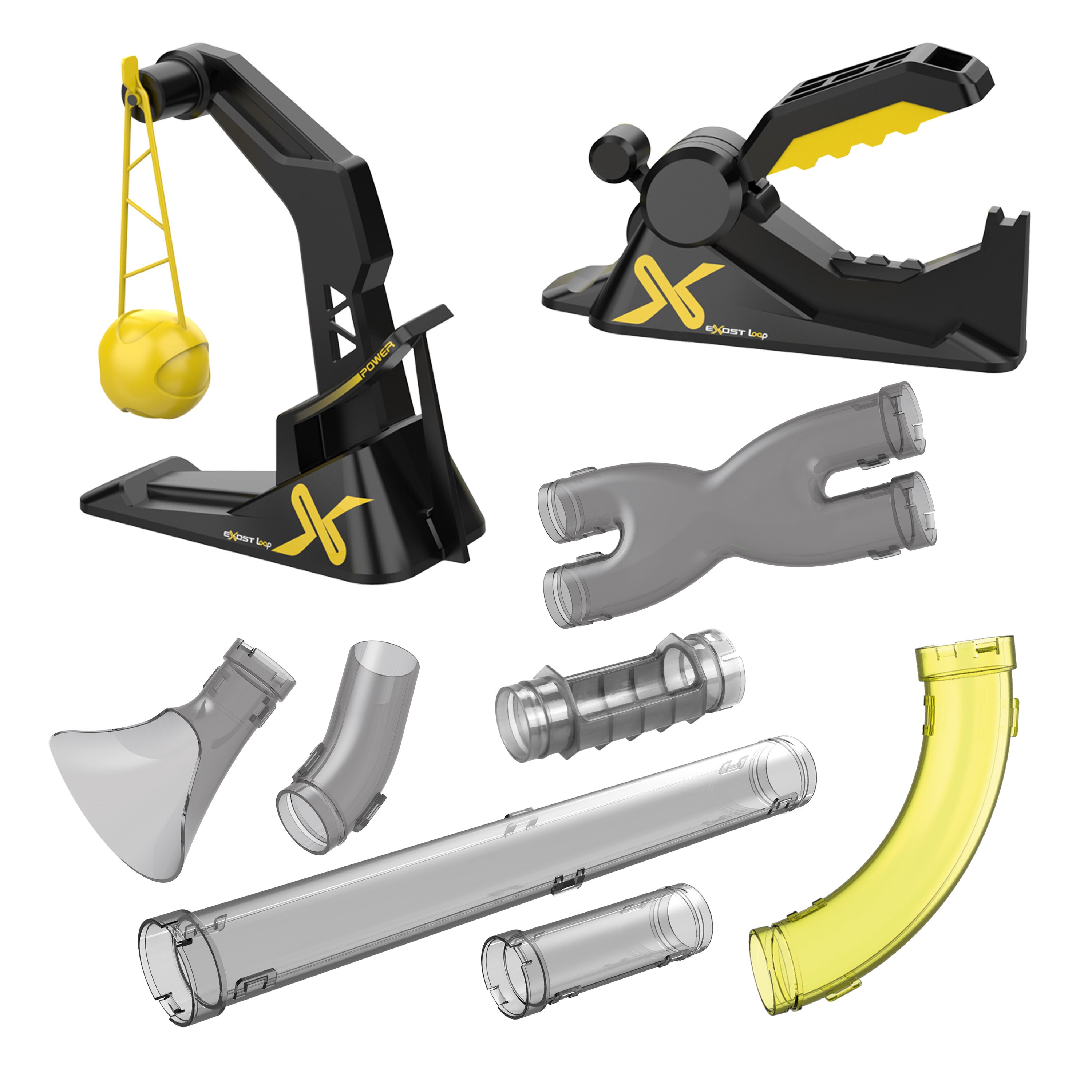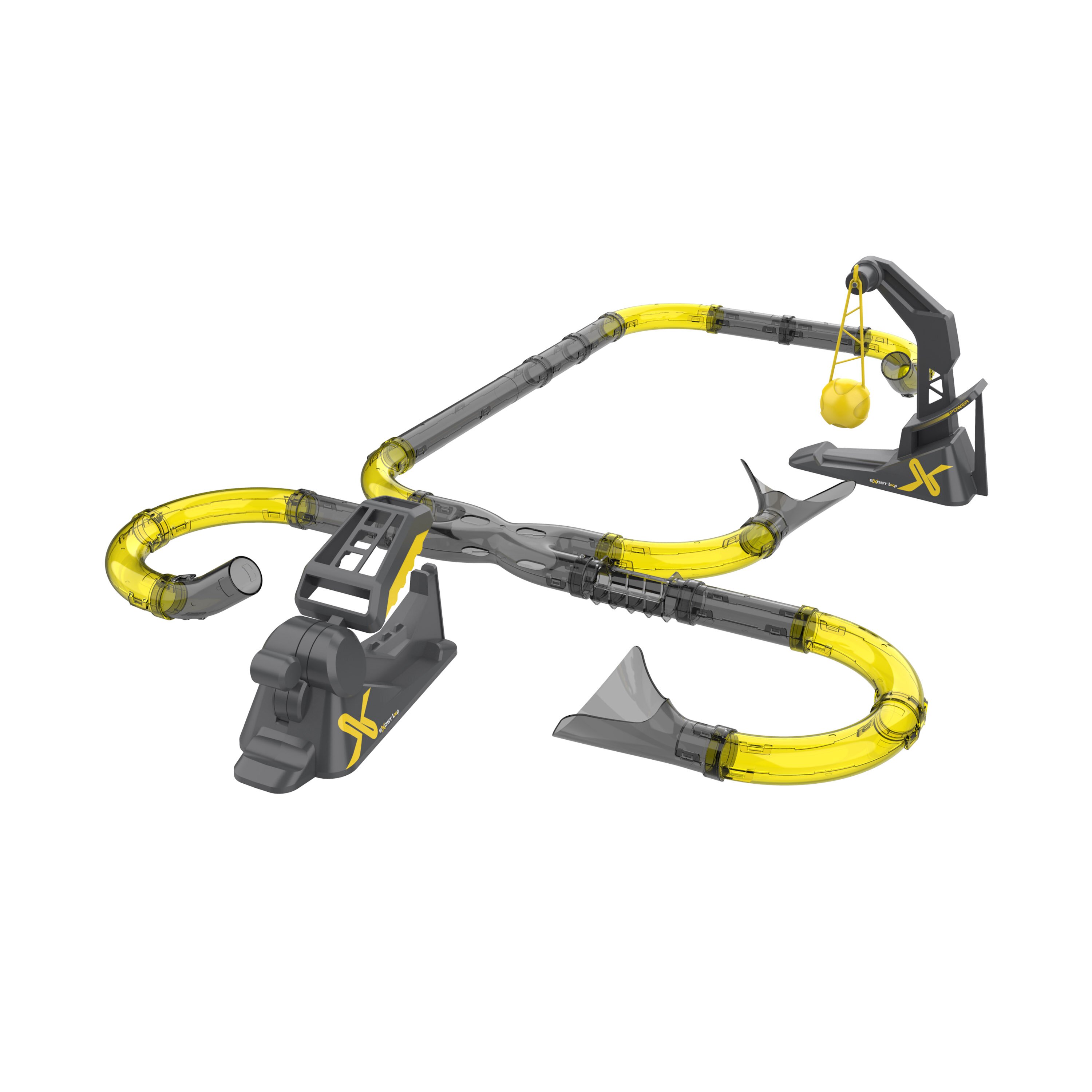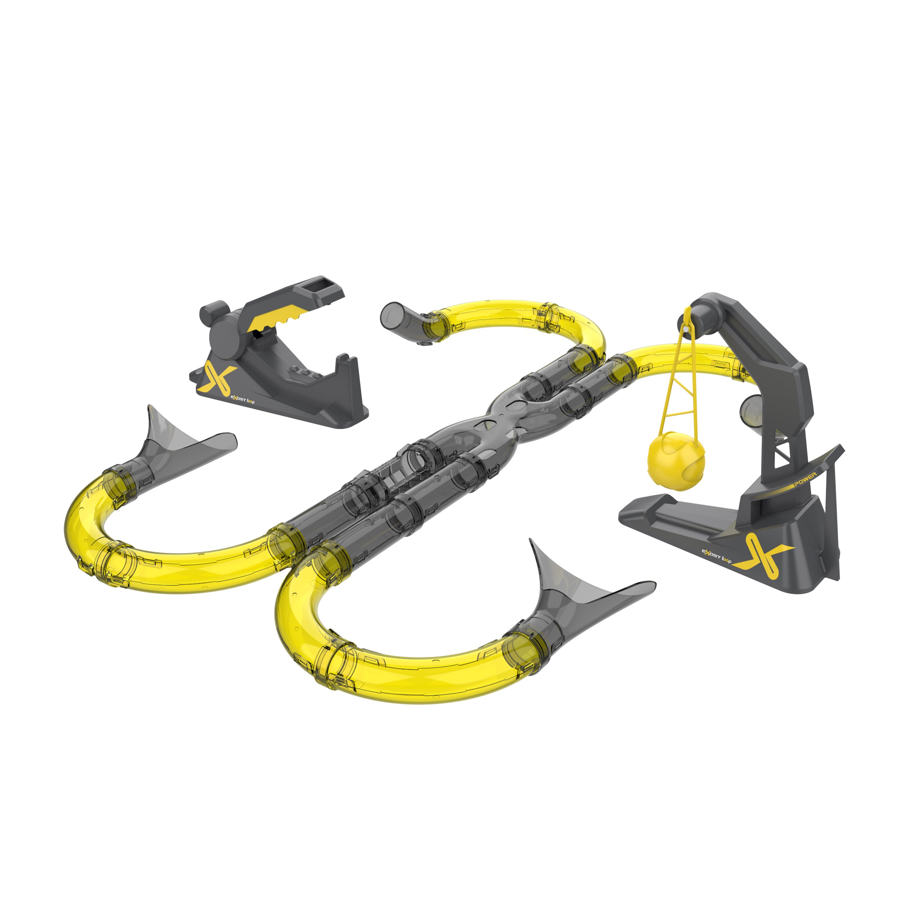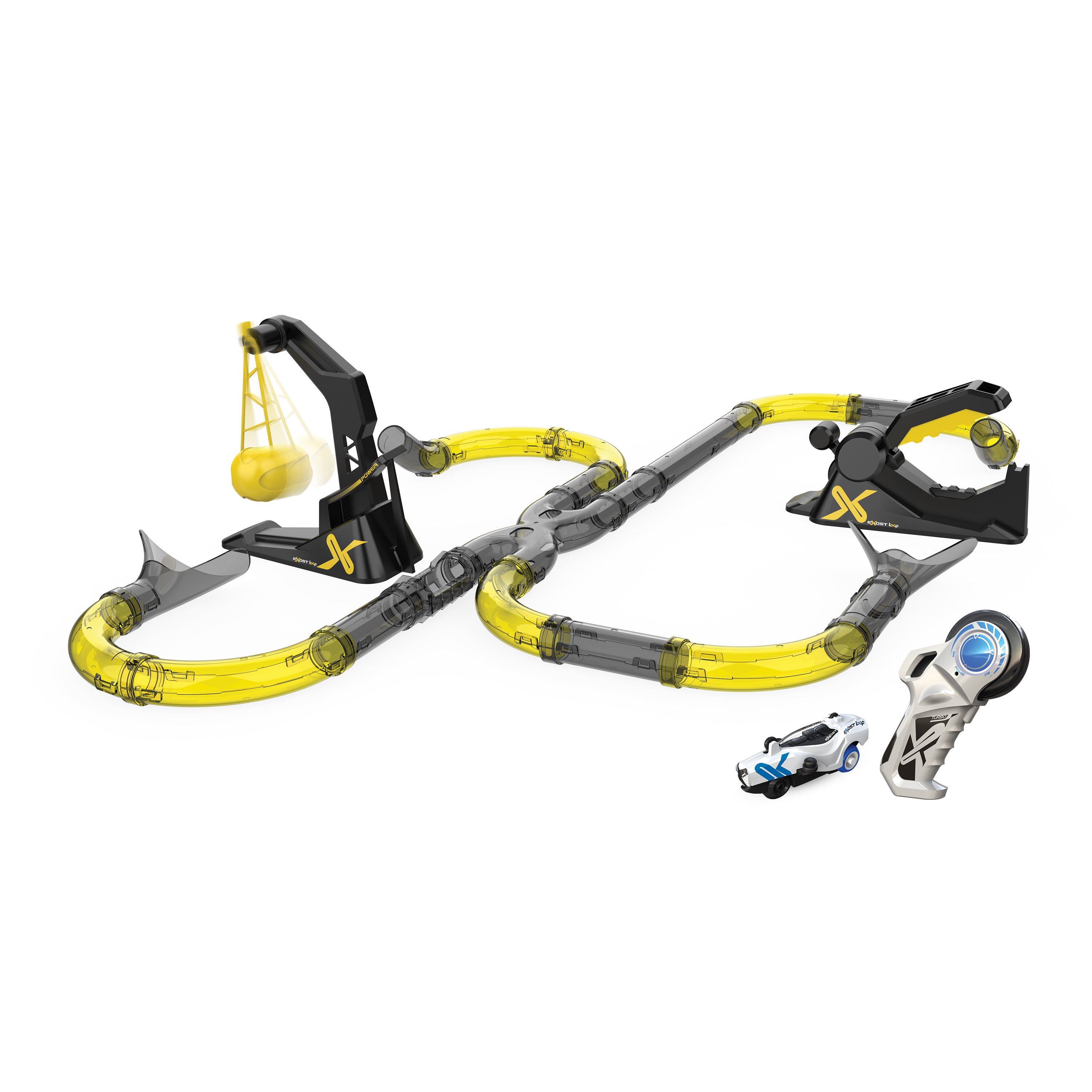 Комплектація: 1 машинка, 1 пульт керування, 1 вхідна трубка, 8 вигнутих труб, 6 коротких прямих труб, 1 довга пряма труба, 2 комплекти трюкових труб, 1 Х-видна труба, дробилка, маятник. Живлення: 2 ААА батарейки для пульта керування (не включені у комплект).