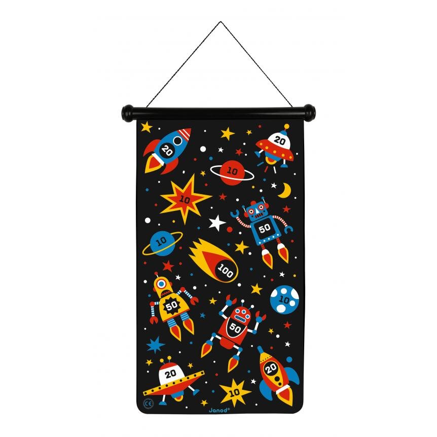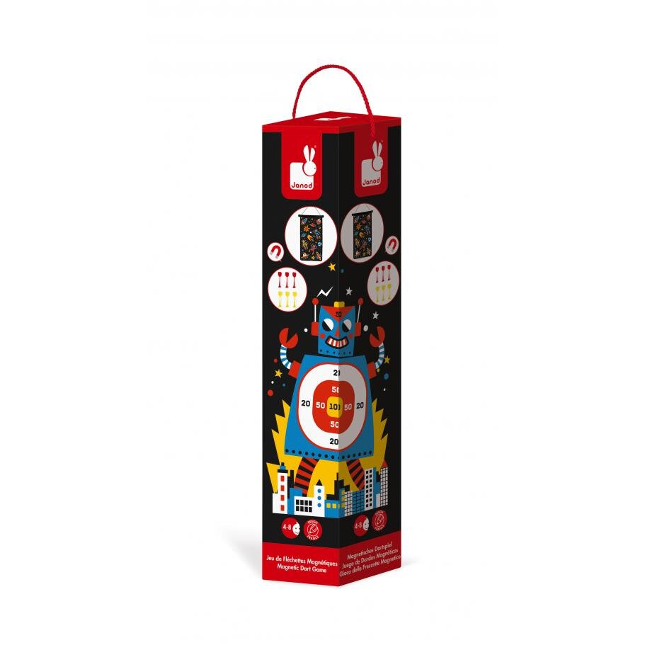 Магнітний дартс «Роботи» від французького бренду Janod. Змагайтесь з друзями на влучність або тренуйся та вдосконалюй власні навички. Дартс на космічну тематику можна легко закріпити на стіні. Мішень поділена на сектори.