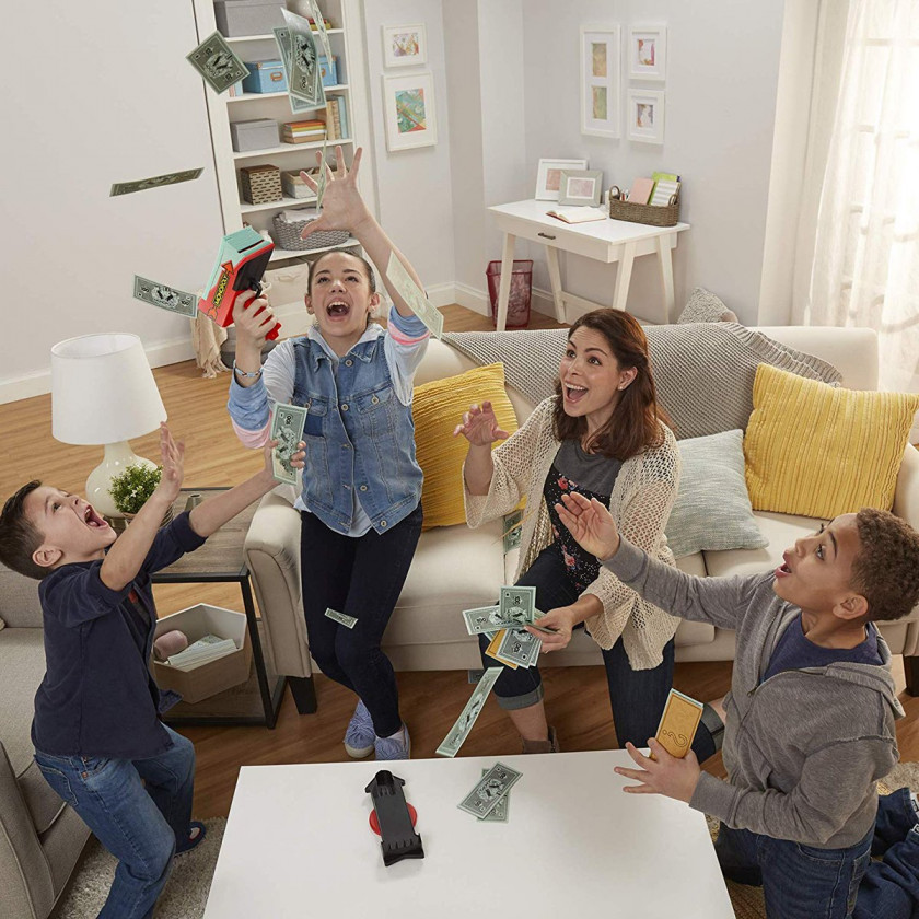 Легендарна економічна гра сподобається кожному. Грай і знаходь спосіб розбагатіти, вчися розпоряджатися своїми фінансами. Умови гри прості і зрозумілі. Потрібно зарядити купюри і картки Монополії в бластер і стріляти ними в повітря. Мета кожного гравця – захопити якомога більше купюр і карток. Коли в бластері закінчаться купюри - гра закінчується. Виграє гравець, у якого на руках більше грошей.