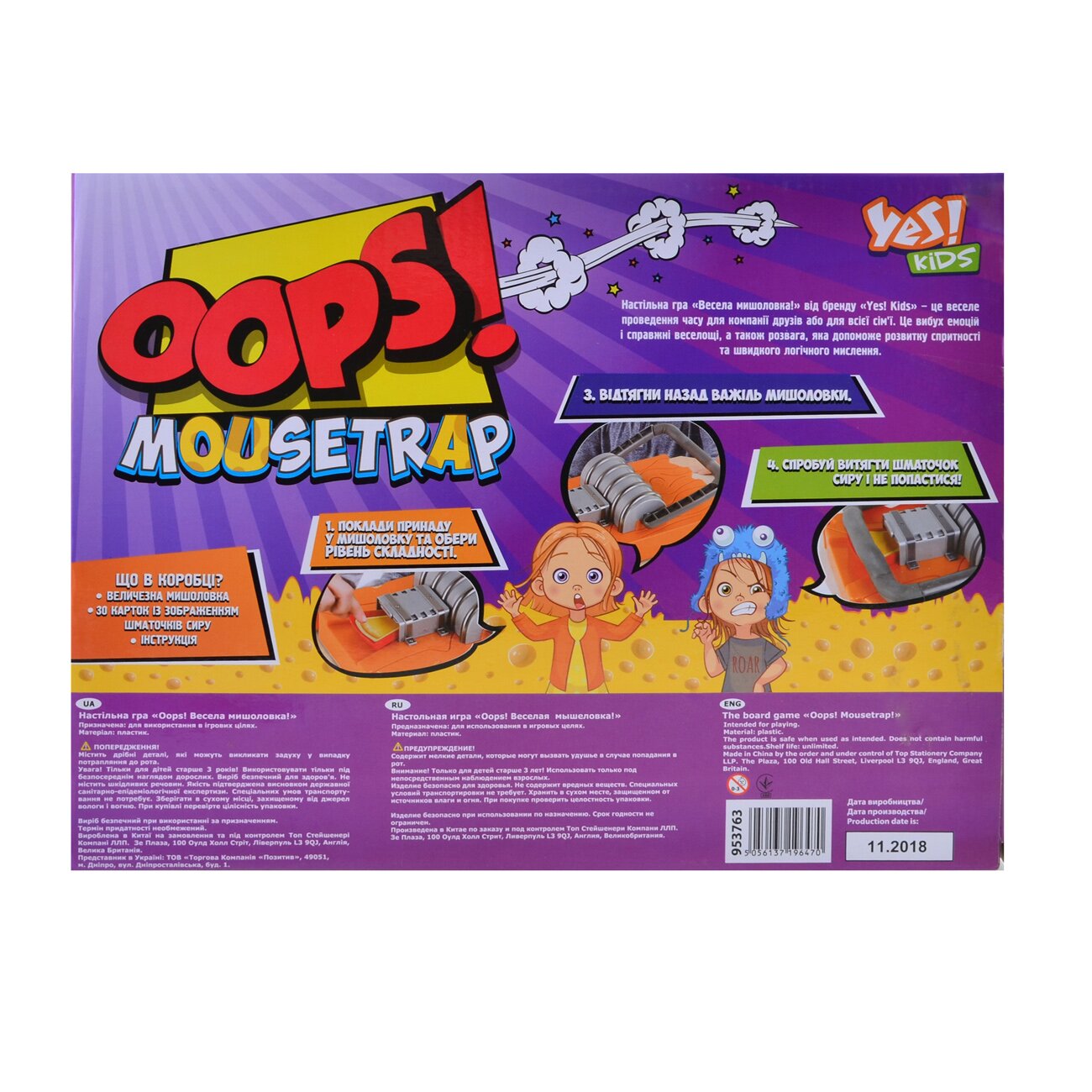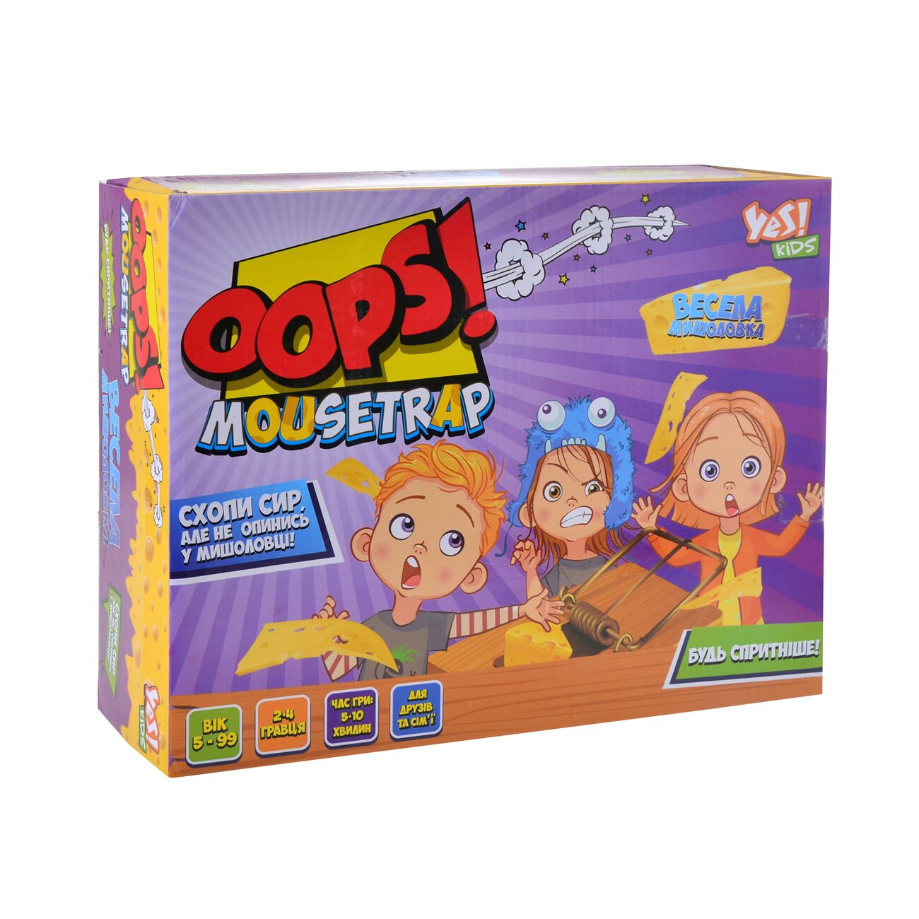 Набір розвиває спритність і швидкість реакції - треба як можна акуратніше витягнути шматочок сиру із мишоловки, не потрапивши у неї.