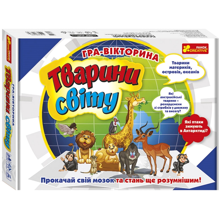 Як грати? Граючи в інтелектуальну гру-вікторину «Тварини світу», ви не тільки перевірите свої знання, а й дізнаєтеся багато нового про тварин. Не хвилюйтеся, відповіді можна знайти в правилах гри. А ще на кожній картці є підказка — фотоілюстрації. Успіхів і легких питань!